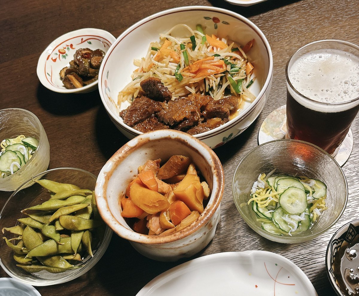 母とアマプラ見ながら ケラケラ笑った一日でした(*^^*) ♡カルビ野菜炒め ♡筑前煮 ♡きゅうりとじゃこの酢の物 ♡もずく酢 ♡黒豆の枝豆 ♡マルエフ黒生ハーフandハーフ かんぱーい🍻 食べたら帰ります🚃𓈒𓂂𓏸 #ばんごはん #実家ごはん #カルビ #料理記録 pic.x.com/UTkfluwn0X