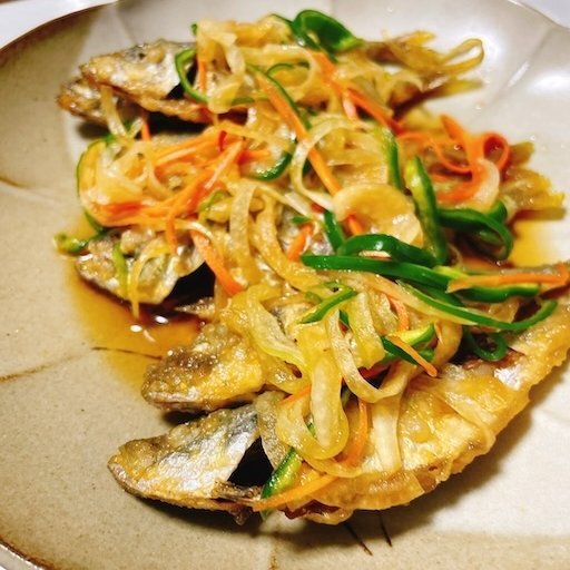 小アジの南蛮漬け。油で揚げられた小アジは、骨ごとバリバリ食べられちゃう。ご飯もビールも進む家庭の味って感じで、良いですわ〜。居酒屋でも南蛮漬けって意外とメニューにないので、これは嬉しいおうちごはんグルメ。 #おうちごはん #実家飯 pic.x.com/jKmCJsL3sZ x.com/Wakiblog/statu…