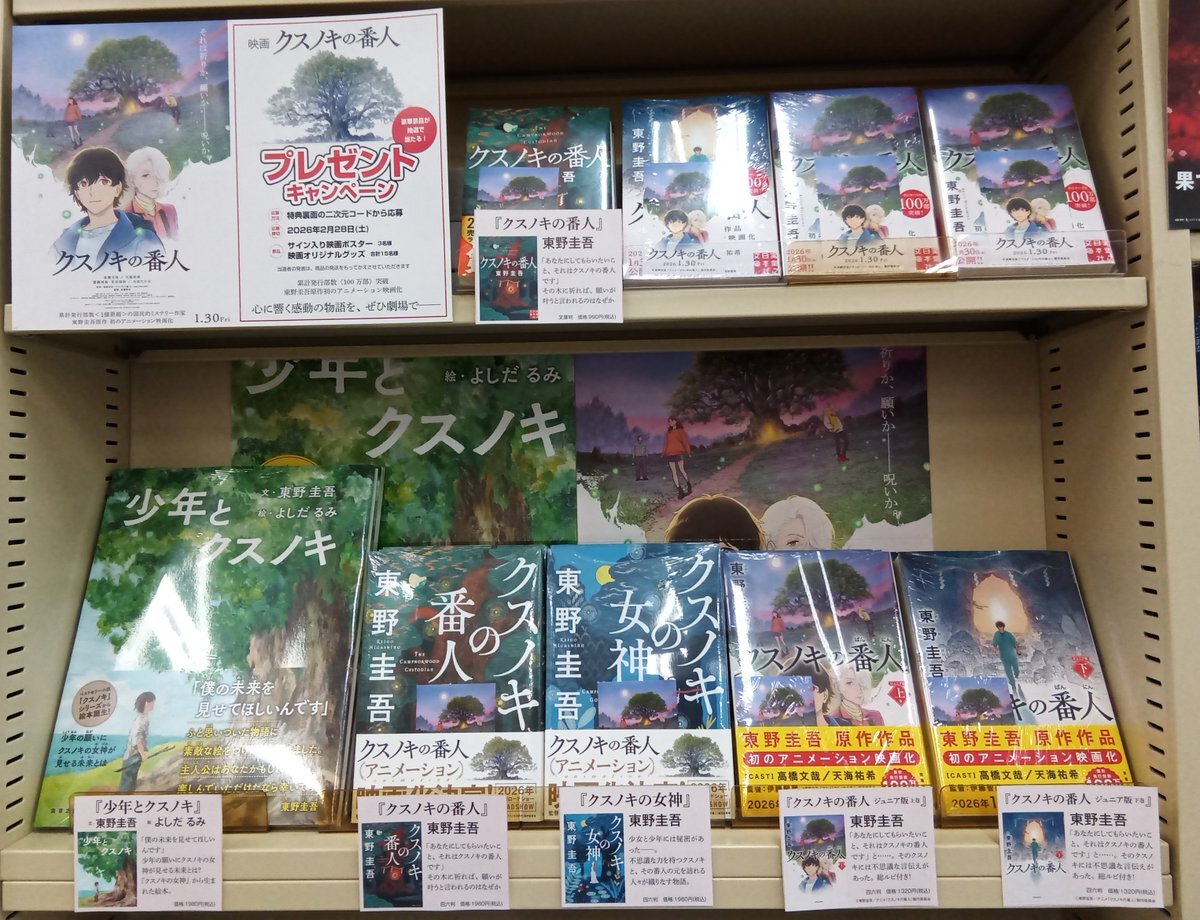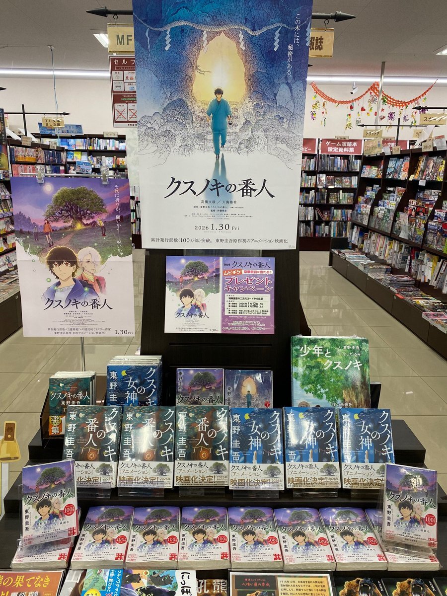 文庫売り場にて、映画「#クスノキの番人」コーナー展開中です! 2026年1月30日の映画公開に先駆けて、豪華景品が当たるプレゼントキャンペーンも実施中です! ぜひこの機会にお買い求めくださいませ(^▽^)/ 皆様のご来店を心よりお待ちしております☺ #明屋書店 #実業之日本社 #東野圭吾 pic.x.com/BFn5RTVItq