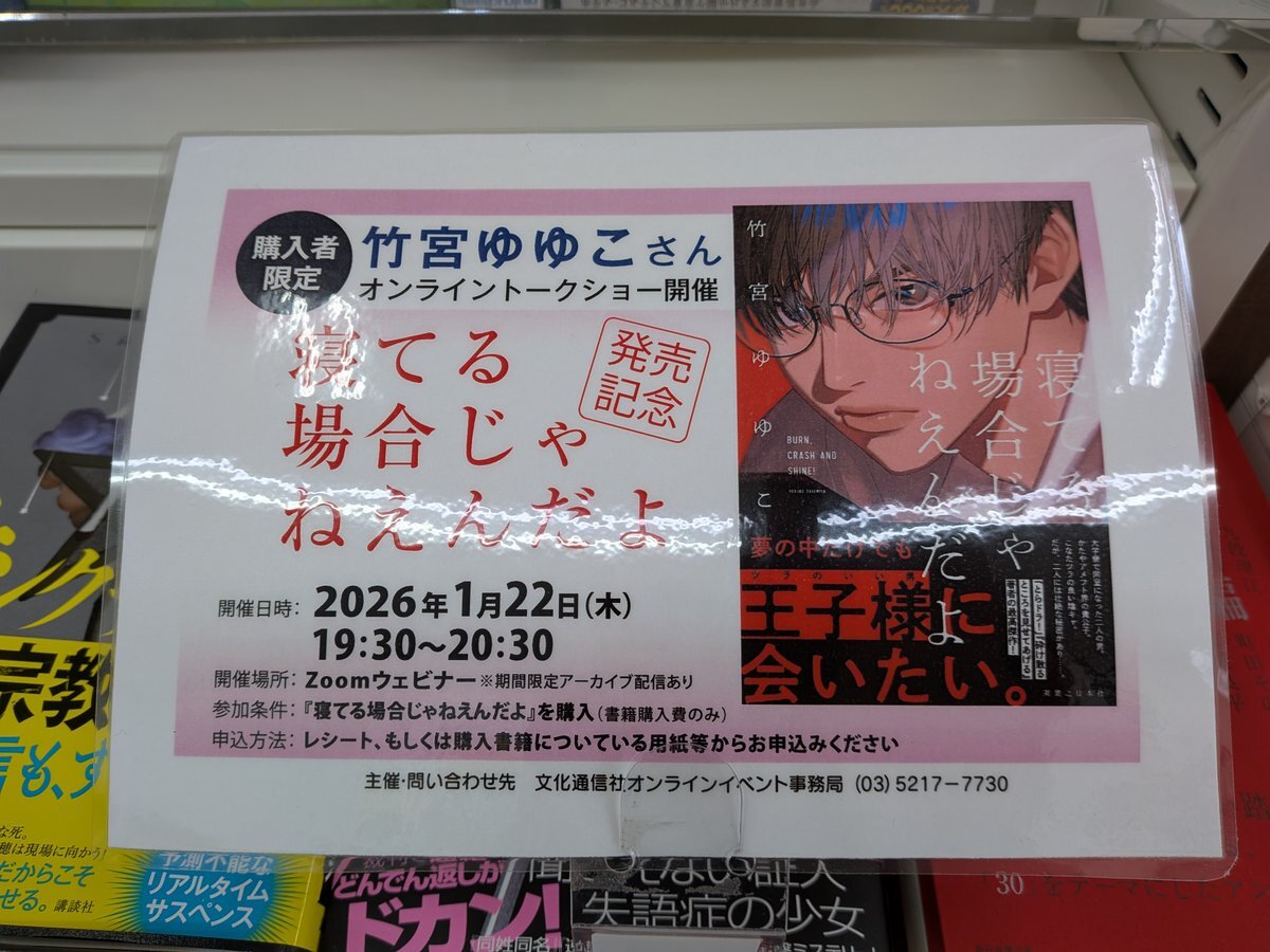 ☆書籍入荷情報☆ 『寝てる場合じゃねえんだよ』発売記念 「竹宮ゆゆこさん オンライントークショー」開催決定❗️ 当店でご購入いただきますとオンライントークショー参加登録用紙が付いてきます😍 ぜひこのチャンスをお見逃しなく😊 #竹宮ゆゆこ #実業之日本社 pic.x.com/GWYT0arbRv