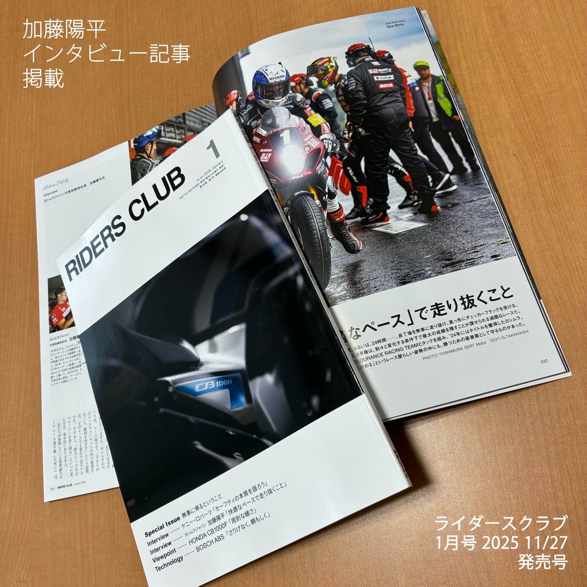 【雑誌紹介】#RIDERSCLUB 「無事に帰るということ」をさまざまな視点から考察する特集です。その中で「快適なペースで走り抜くこと」をテーマに#ヨシムラ 加藤陽平が語っています。是非とも手に取ってご覧ください。 j-n.co.jp/books/19315-01… #ライダースクラブ 2026年 1月号 #実業之日本社 pic.x.com/yQbljjvlDu