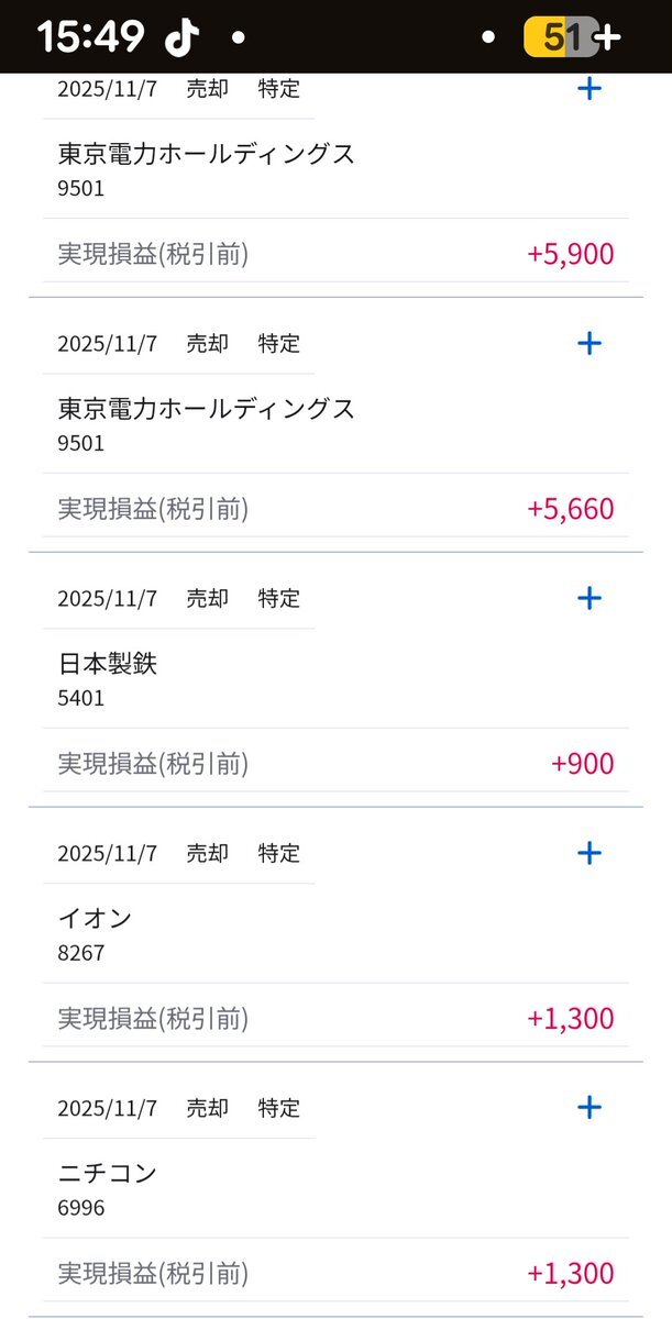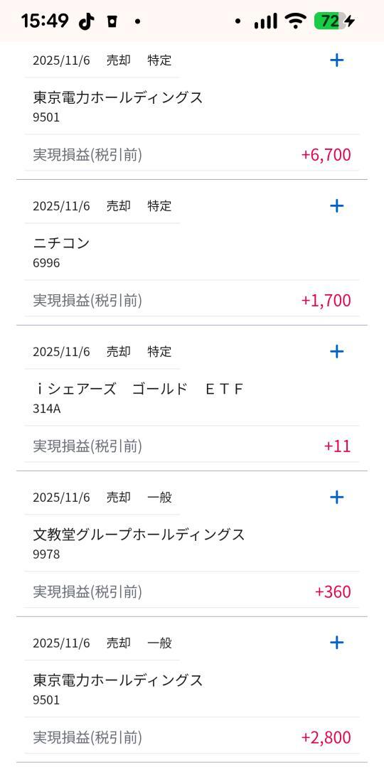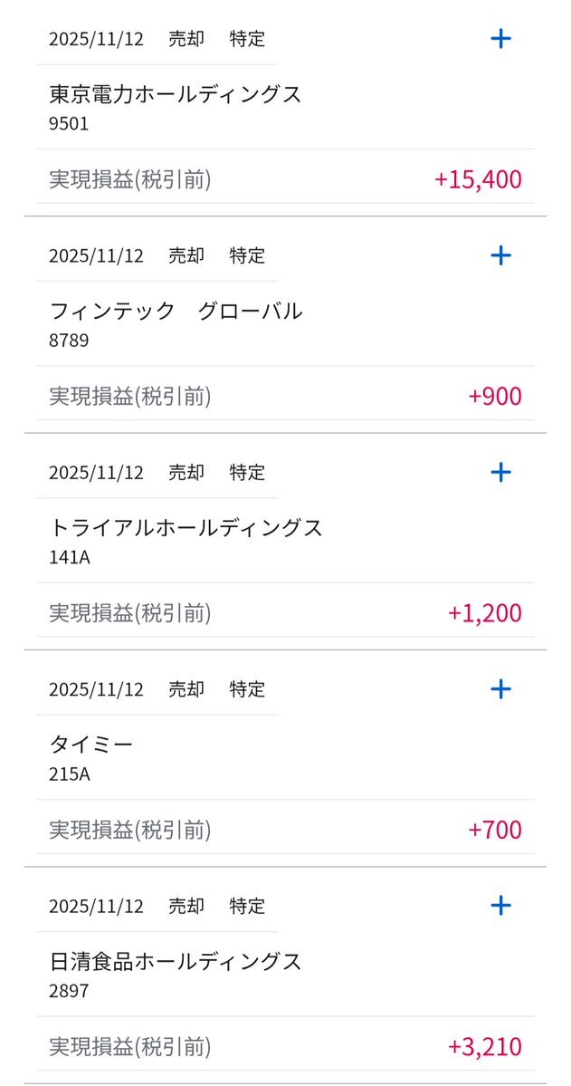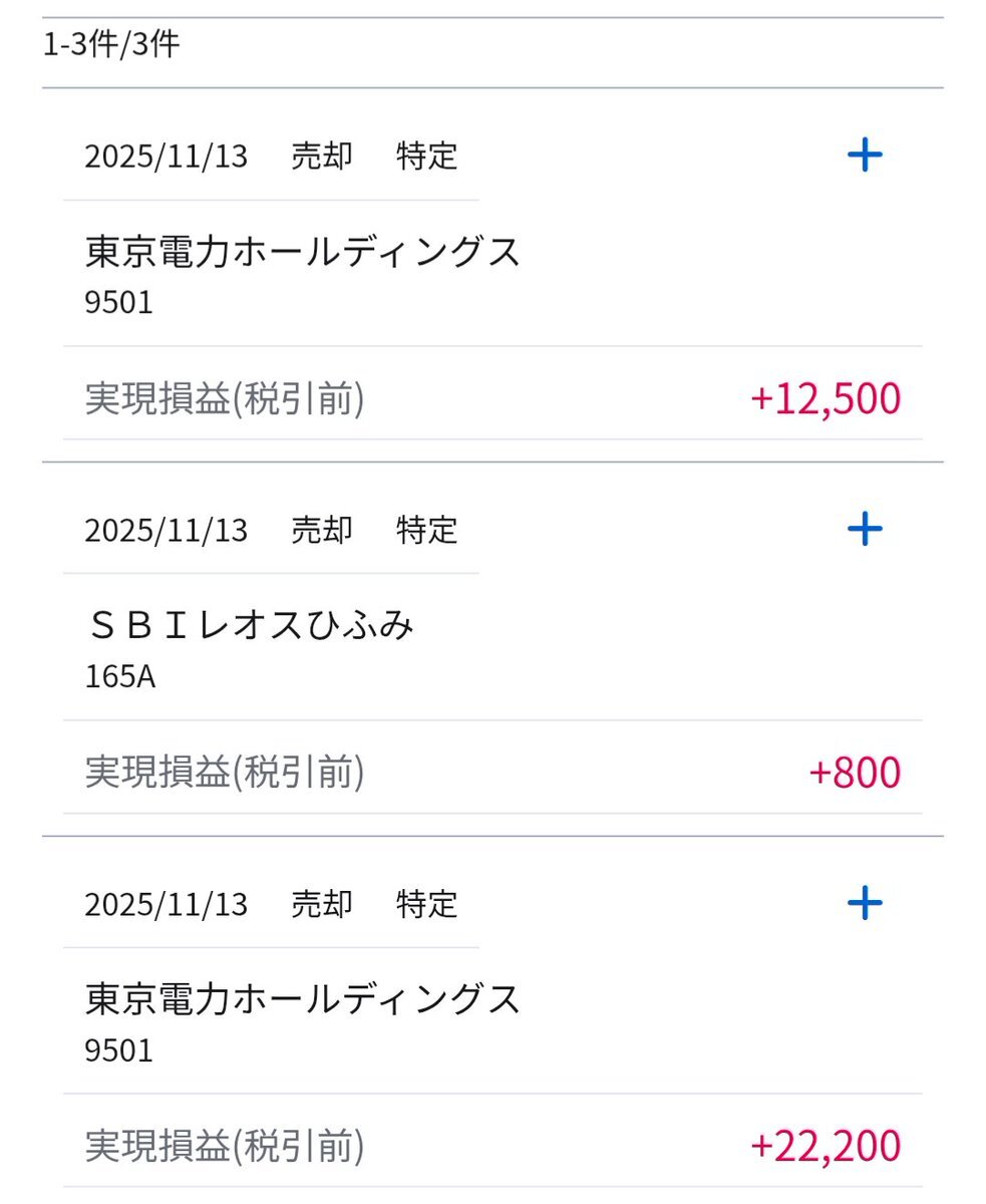 #デイトレ 日経】 #引け乙 です 本日の損益+35500円 損切無し 【買い】 東電100株 森永製菓100株 フィンテックG100株 【売り】 東電300株 SBIレオスひふみ200株 本日も東電株価上昇が他 マイ転銘柄の憂い𛄛一時的に 解消🦆? #実現損益 pic.x.com/f3vzqPpCF9