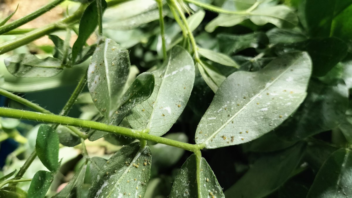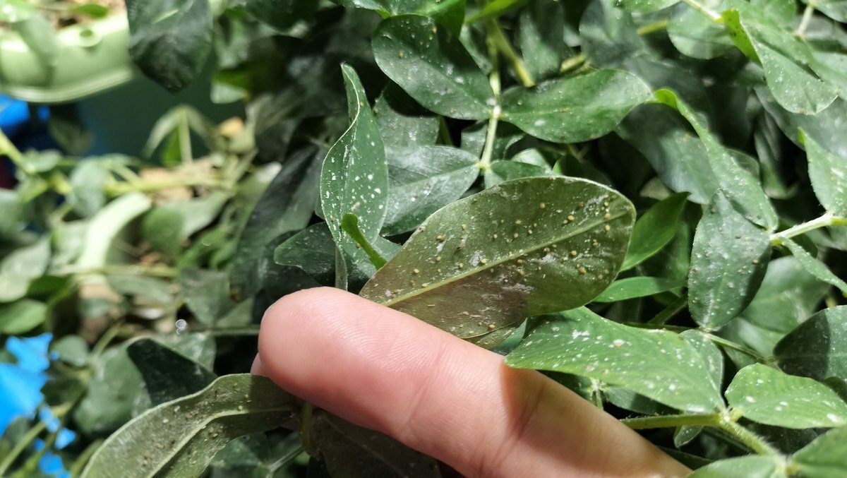 あれから落花生の様子🥜 片栗粉を水に溶かし、霧吹きでかけて窒息を謀りましたが、ほぼ全面にアブラムシが増殖😨 アブラムシが黒くなっているので、効果はあるようですが、繁殖+増殖が上回り恐ろしいことに🤣 #室内栽培 #落花生 #アブラムシ pic.x.com/PdpSQZB0tg x.com/s4yA8THpBVNBud…