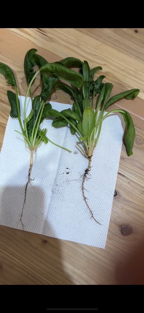 左→生育期間 短い 右→生育期間 長い 右の生育期間長い方が葉っぱの枚数が多い 一方で、左の生育期間が短い方が一枚あたりの葉っぱは大きく見える これは、左の方が光がよく当たっていた影響だと思う。 二つの条件を組み合わせれば次回はもっとうまくいく気がする🧐 #ほうれん草栽培 #室内栽培 pic.x.com/AmaFWbrMUe
