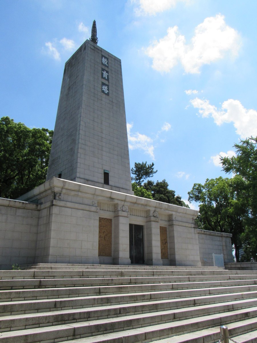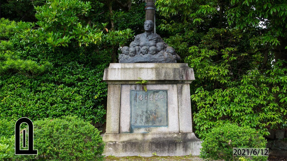 過去からの言伝、自然災害伝承碑を訪ねて。京都市東山区にある知恩院東門横「師弟愛の像」は1934(昭和9)年9/21、西日本一帯を襲った室戸台風による校舎倒壊で犠牲になった教員と児童に関する碑。耐風性に乏しい木造校舎の倒壊が多く、京都市内に他にも同種の碑がいくつか存在する。#自然災害伝承碑