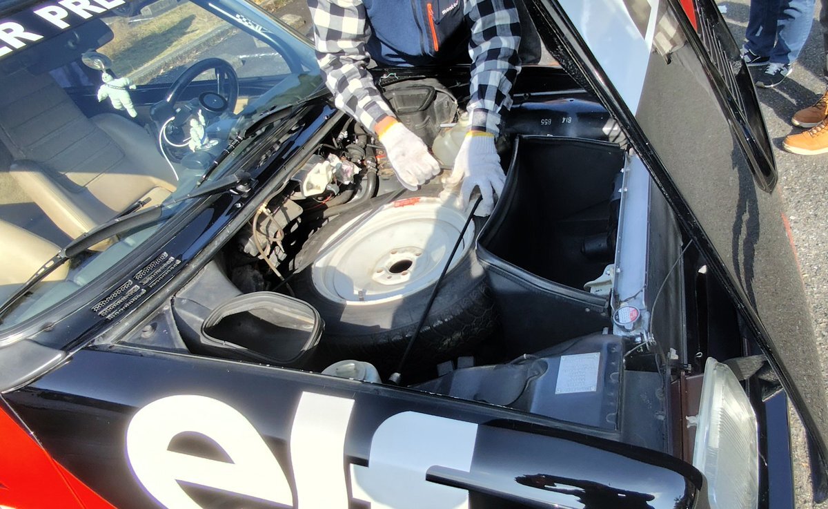 人生初 5ターボ2のミッドシップレイアウトエンジンに フロントフード内を実目に出来る機会に恵まれますとは… どうやらフロントから本来の機関を取払われた空間には 下部にFRP軽量素材の大径円筒を取付ける事で 空白の強度を補っているとの事の様で🤔 #宮ヶ瀬 #鳥居原ふれあいの館 さん x.com/shimbahome2/st…