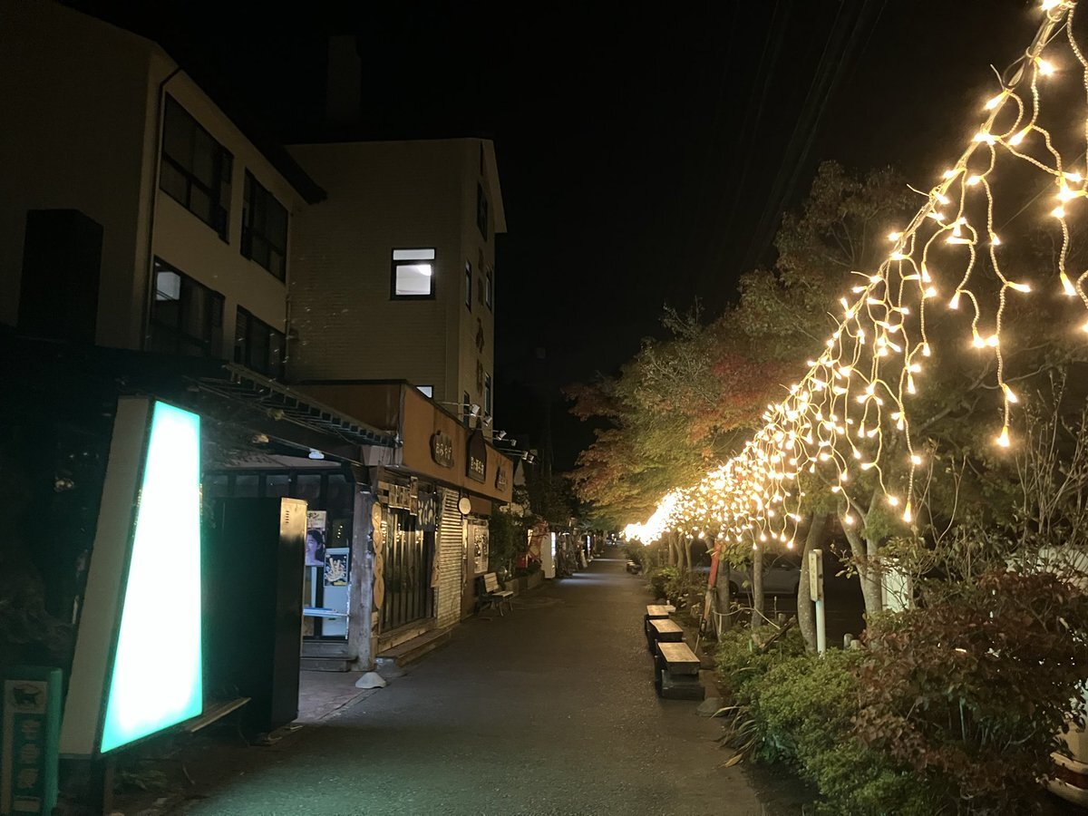 食事と風呂から帰ってきた。 むちゃくちゃライトアップされてるんですが‥。