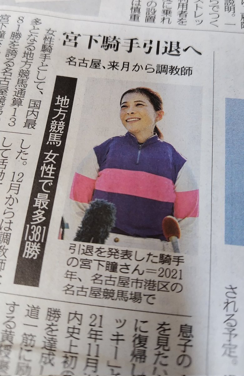 宮下瞳杯・宮下瞳ステークス・宮下瞳カップ 地方競馬にレース創設を! #宮下瞳 【宮下瞳騎手が調教師転進】「家にいる時は寝る時間以外ずっと勉強…夫や子どもたちのサポートのおかげ」 喜びかみしめ「ホッとしました」(中日スポーツ) #Yahooニュース news.yahoo.co.jp/articles/f4964…