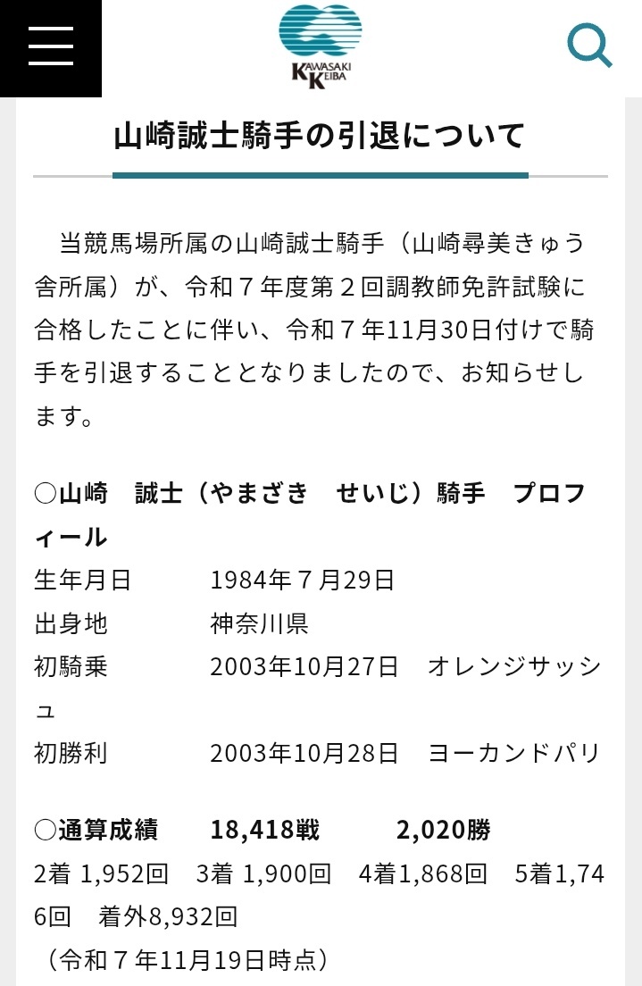 宮下姐さんと川崎の今野、山崎が今月いっぱいで引退して調教師転身か… 【記事全文】【地方競馬】宮下瞳騎手が引退、調教師転身 女性最多1381勝 川崎・今野忠成、山崎誠士も調教師に - スポニチ Sponichi Annex ギャンブル #宮下瞳 #今野忠成 #山崎誠士 sponichi.co.jp/gamble/news/20…