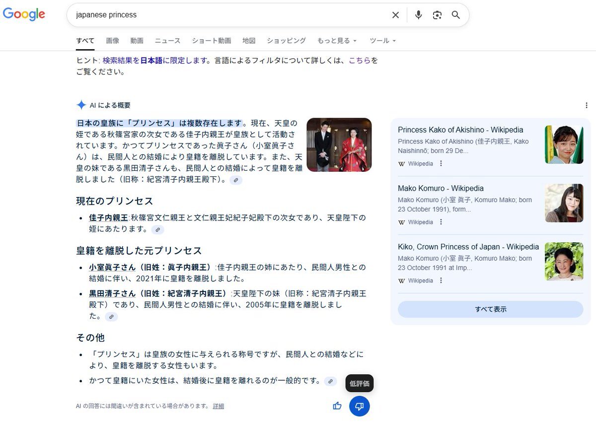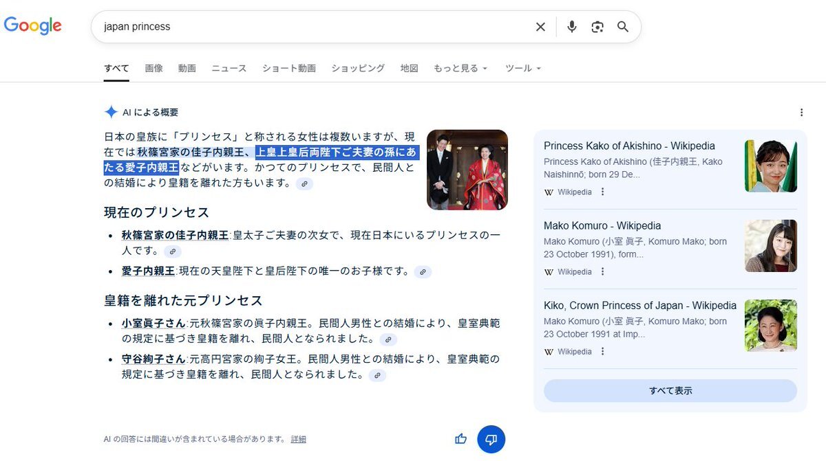 #Google #GoogleAI #GenerativeAI Googleの生成AIが 皇統簒奪に加勢している記録 徹底的に #敬宮愛子内親王殿下 を隠す方針 これほど 嫌がらせを受ける Princessが世界におられるだろうか❓ #Imperialfamily #宮内庁の敬宮さま隠し #宮内庁は国民の敵 pic.x.com/oq2eKCnk2E
