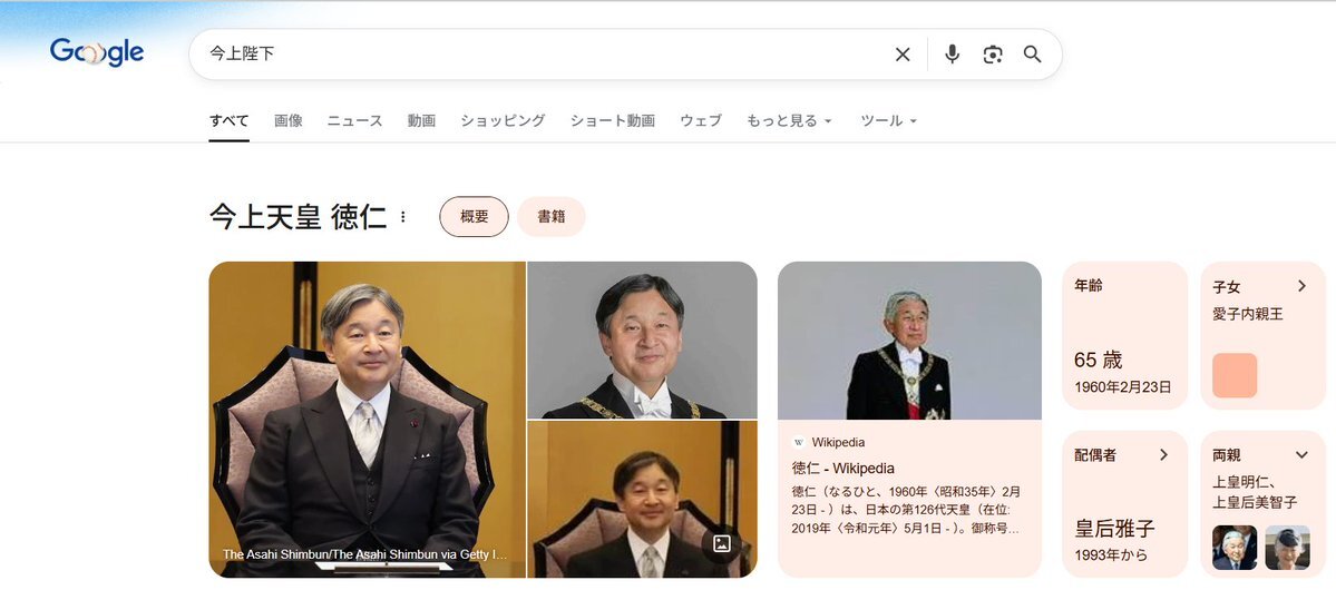 Wikipediaには 今上陛下のお写真が正しく表示されているのに わざわざ【父:明仁】の写真を引用して表示する 悪意を持った”手の技”を使わせる 👓強いお気持ち👓反映ツール #Google #GoogleAI #GenerativeAI #Imperialfamily #上皇后の二重権威反対 この状況を放置し続ける #宮内庁は国民の敵 pic.x.com/P30RnpySin