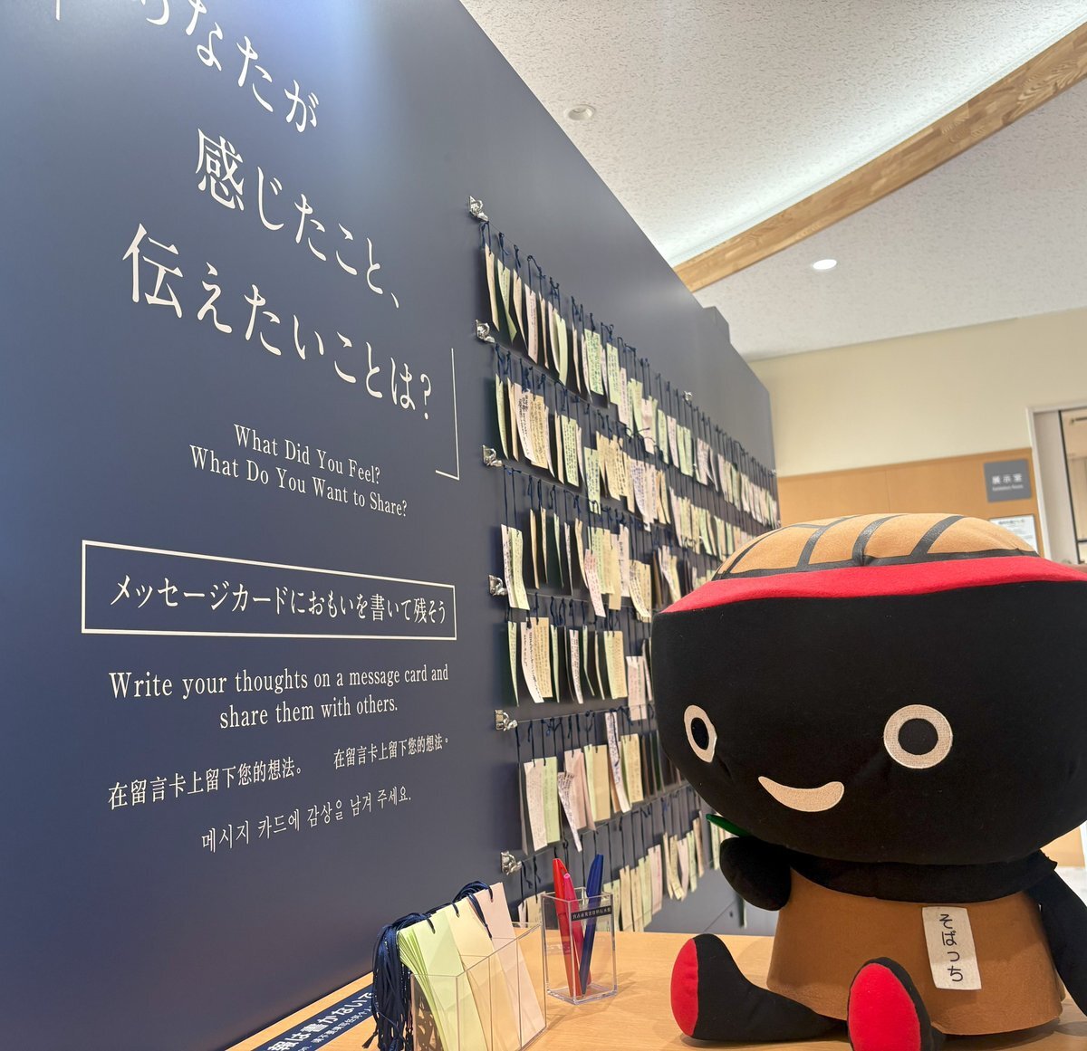 宮古市災害資料伝承館。館長さんの説明を聞きながら見学しました。来館者が感じたことを書くコーナーも。そばっちはなんて書いた? 385-densho.jp #岩手 #宮古 #災害資料伝承館 #そばっち pic.x.com/nMCIBp0vb7