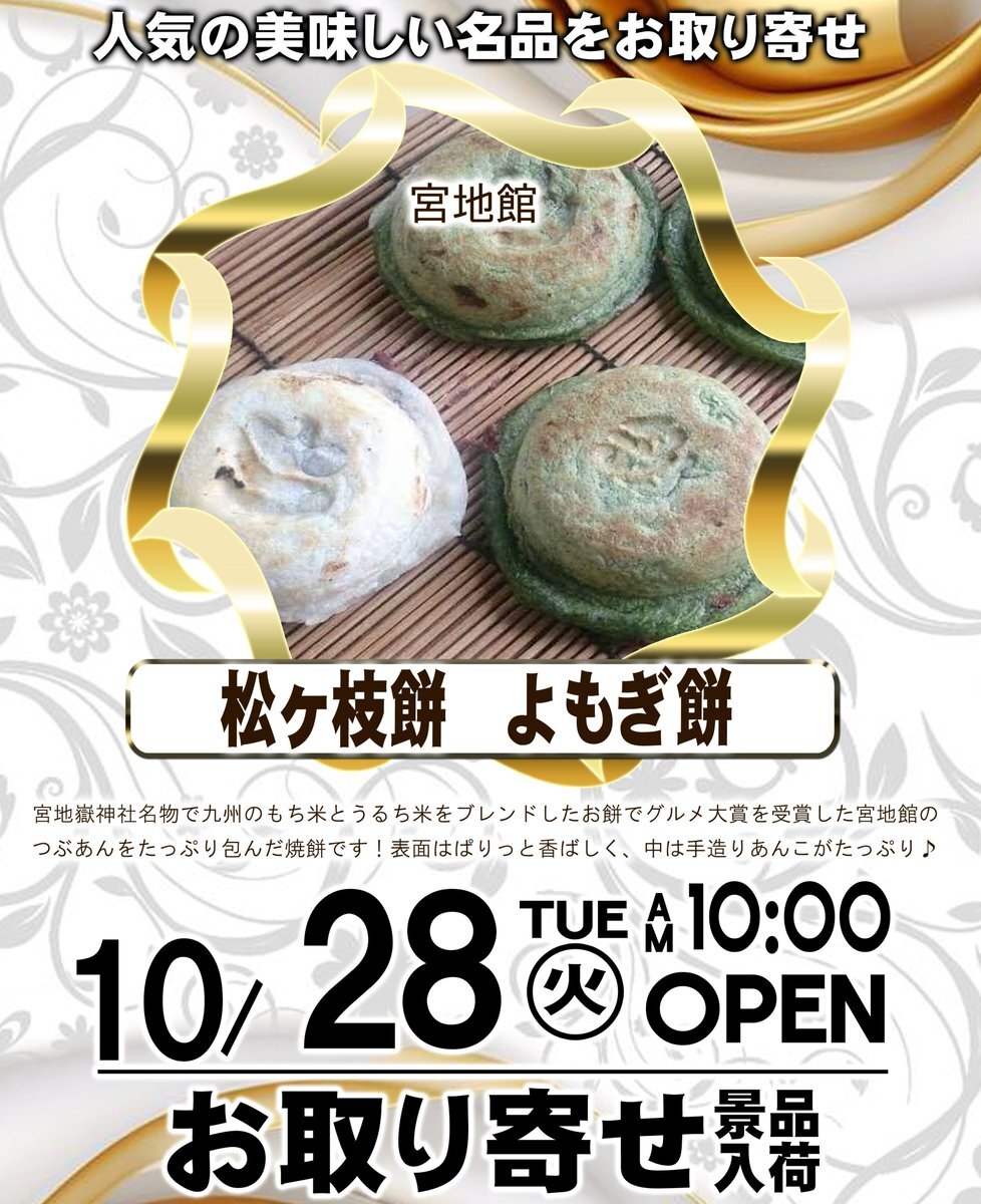 クラブハウス 川崎支店です🤗 明日28日 #火曜日🔟時お~ぷん‼️ ⏰抽選9:40分開始👍 🎁#お取り寄せ景品 入荷❗️ 🍡#宮地館 #松ヶ枝餅 #よもぎ餅🍡 香り高い国産よもぎ草をふんだんに使用しております😊 ご来店、お待ちしております‼️ #宮地嶽神社 pic.x.com/zkYzdG8PIf