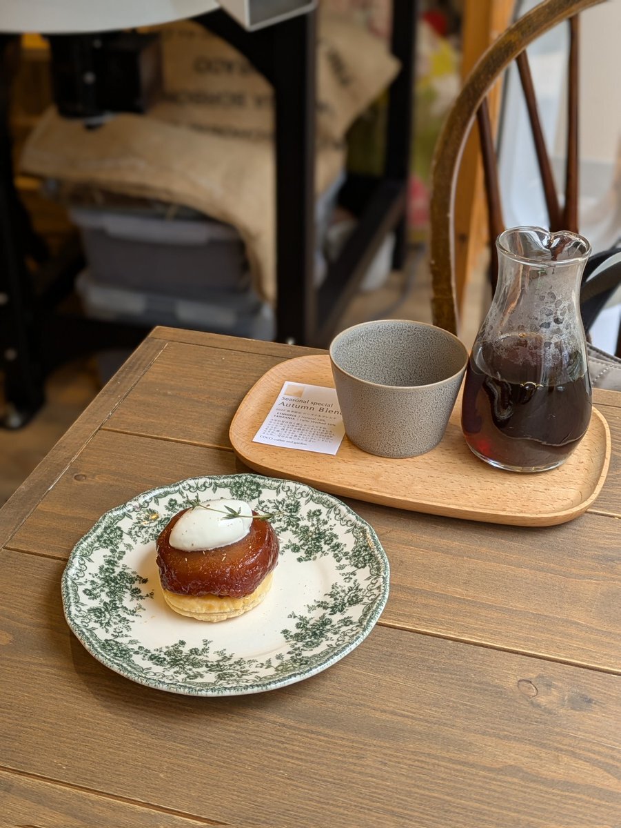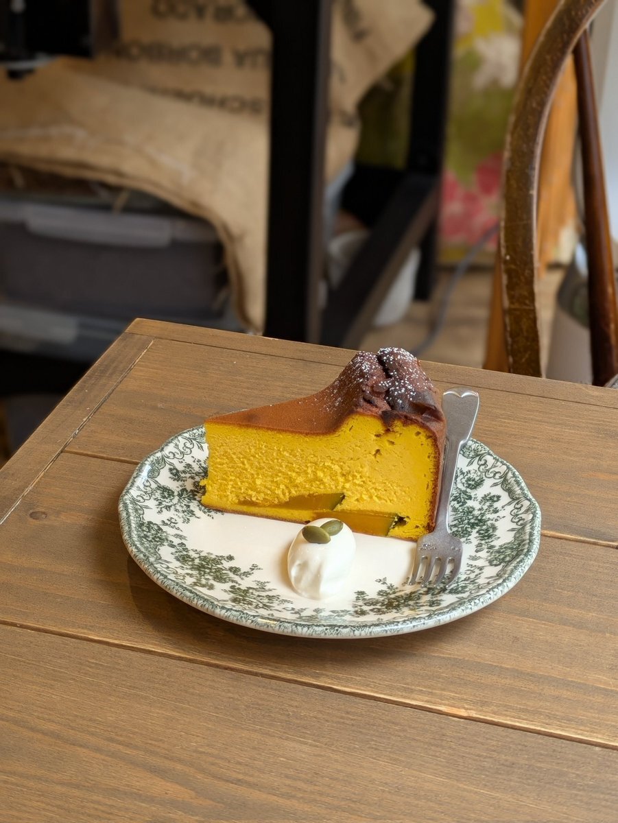 今年100店目はCOCO coffee and garden(仙台青葉区) タルト・タタン、かぼちゃのバスクチーズケーキ、秋ブレンド☕️を ここのタルト・タタンが好き🩷 バスチーはかぼちゃの味がしっかり感じられて🎃好きにはたまらない❗️ 苦味強めのブレンドとよく合う☺️ ここの味、やっぱ好きだ #宮城カフェ #カフェ巡り pic.x.com/uLTn6eiHGN