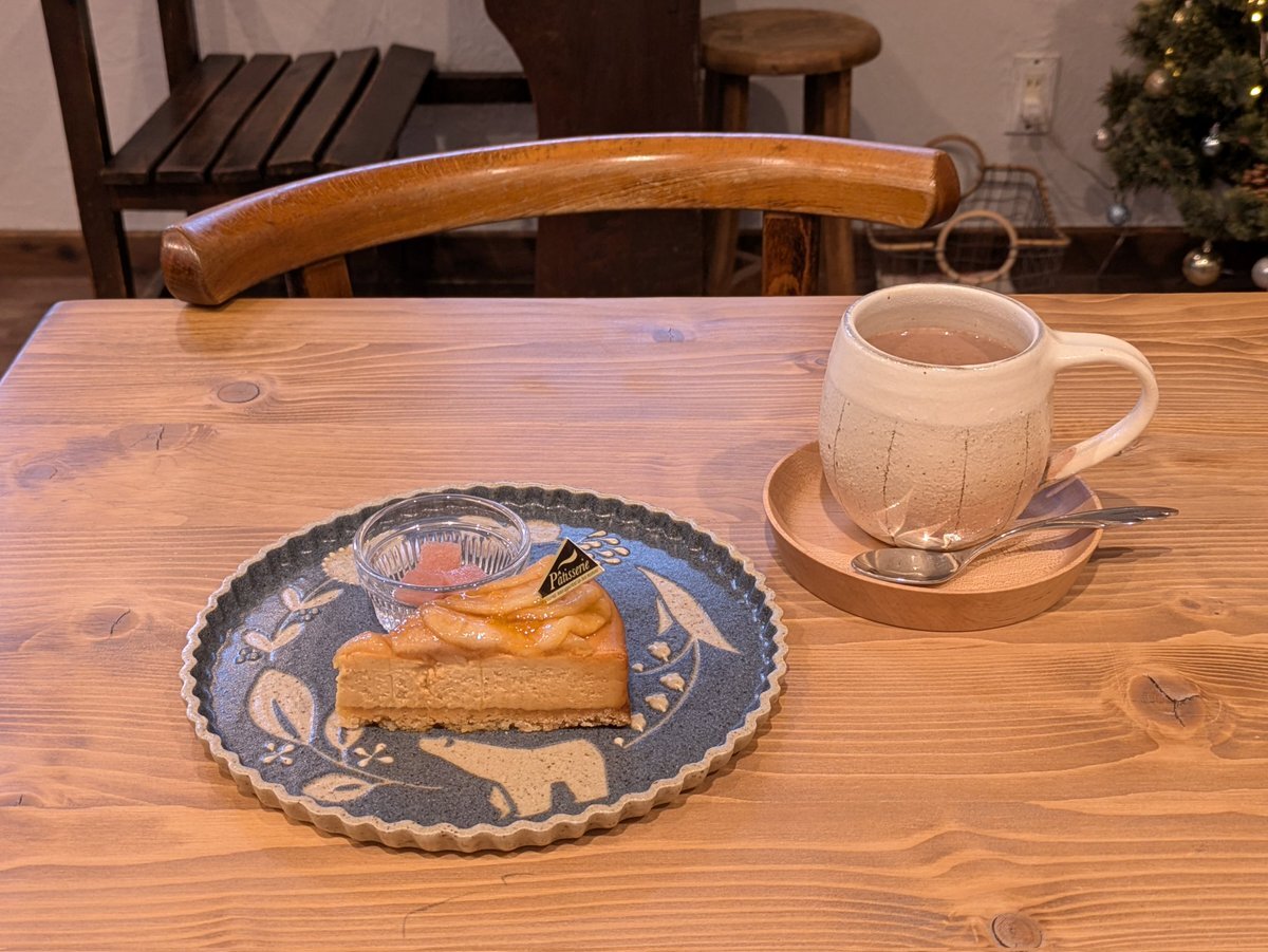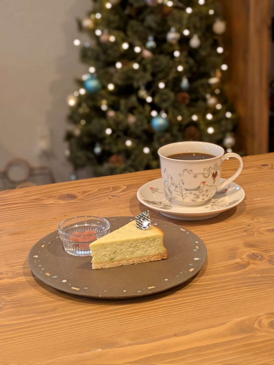今年104店目はまたまたCafeこもれび(仙台太白区)🎄 まずはずんだチーズケーキとこもれびブレンド(深緑) 緑のツブツブかわゆい💕 ずんだの風味豊かでおいしい🫛 次にキャラメルラ・フランスのチーズケーキとホット・ココア ラ・フランスの甘みとほろ苦さが合ってとろける〜😆 #宮城カフェ #カフェ巡り pic.x.com/H3j9MgPe4v