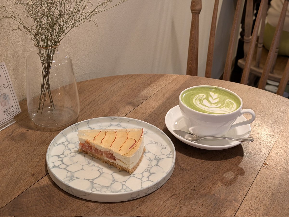 今年99店目は喫茶 久遠(仙台青葉区) ラザニアとリンゴのレアチーズケーキ、抹茶ラテを ラザニアのかぼちゃが甘み出しててうま😊 ケーキの上のジュレと中のコンポート、口の中で合わさるとすごくおいしい🍎 シャキシャキの食感もよき おしゃれで穏やかな雰囲気も久しぶり✨ #宮城カフェ #カフェ巡り pic.x.com/lXVhbxfE0B