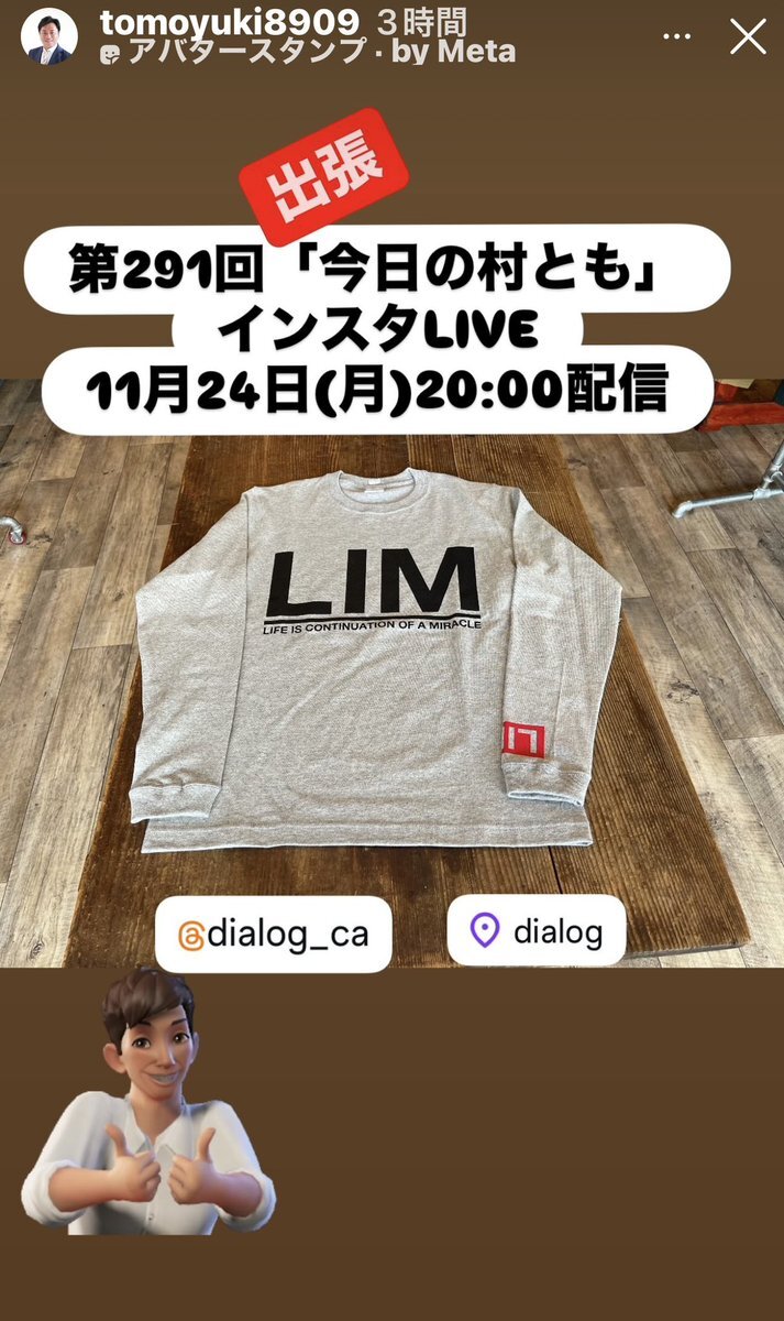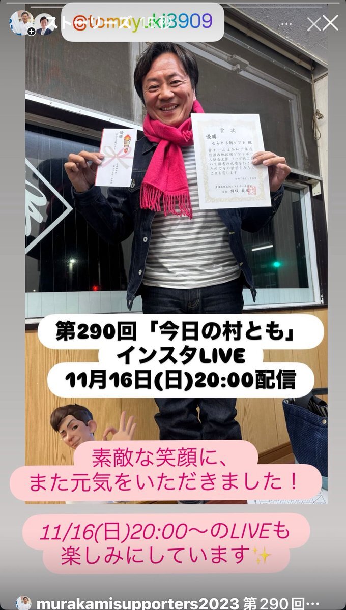 11月24日(月)20:00〜は、 出張バージョンの「今日の村とも」インスタLIVE! いつものスタジオとは違う場所だからこそ見られる、 村ともさんの“ちょっとレアな一面” が楽しめます。 ぜひ、一緒に応援してください。 instagram.com/tomoyuki8909?i… #村上智行 #村とも #インスタLIVE #宮城県議会議員 #岩沼 pic.x.com/ANyCLwmfNS