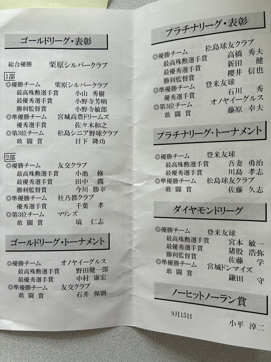 【令和7年度ゴールド・プラチナリーグ納会】 第31回ゴールドリーグ、プラチナリーグ、ダイヤモンドリーグの納会では、優勝チーム、最高殊勲選手賞、最優秀選手賞、勝利監督賞等の表彰がありました。 #いつも心は青春野球 #佐々木なつえ #宮城県議会議員 #宮城野区 pic.x.com/AjrQy1GmNs