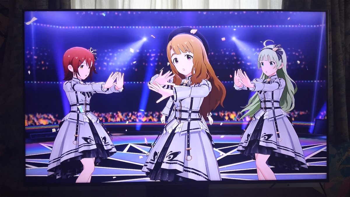 #ミリシタ 4K SDR MV「MUSIC♪」#トライスタービジョン(田中琴葉[CV.種田梨沙]所恵美[CV.藤井ゆきよ]島原エレナ(CV.角元明日香)PTさんのチャンネルより SHARP LC-40U45 ダイナミックモード A201SH 自然光+照明 Fire TV Stick 4K Max(2nd Gen) N回目の採用だが作者(チャンネル)や動画が違うかもしれない x.com/Vanitype04/sta…