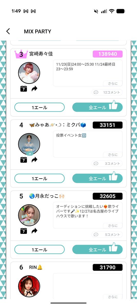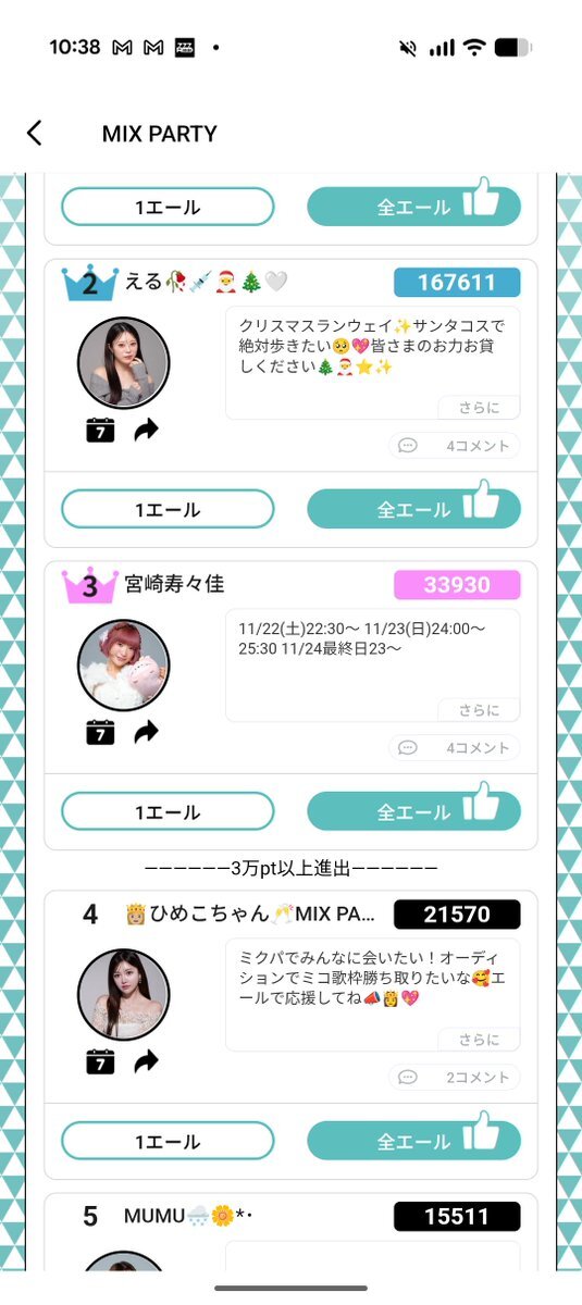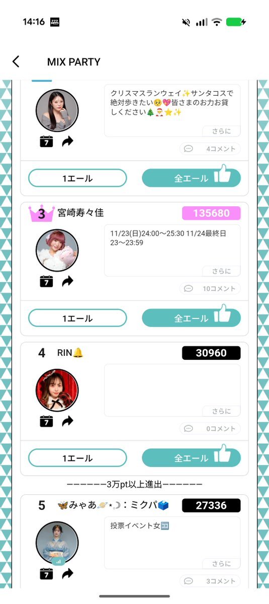 ポイント差と残り日数考えると4位以下は三万ポイント取って第2ステージ狙うかも、、、 しかし 3位以内になればランウェイ確定するので、まだまだ気を抜けない状態です! 無課金でもエールは送れますので応援お願いします! #宮崎寿々佳 pic.x.com/87LUayuAiH