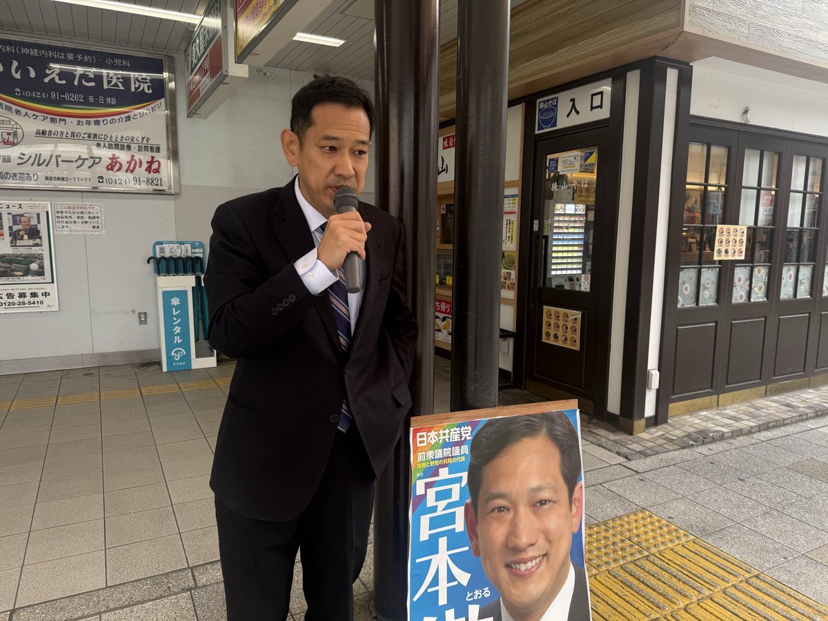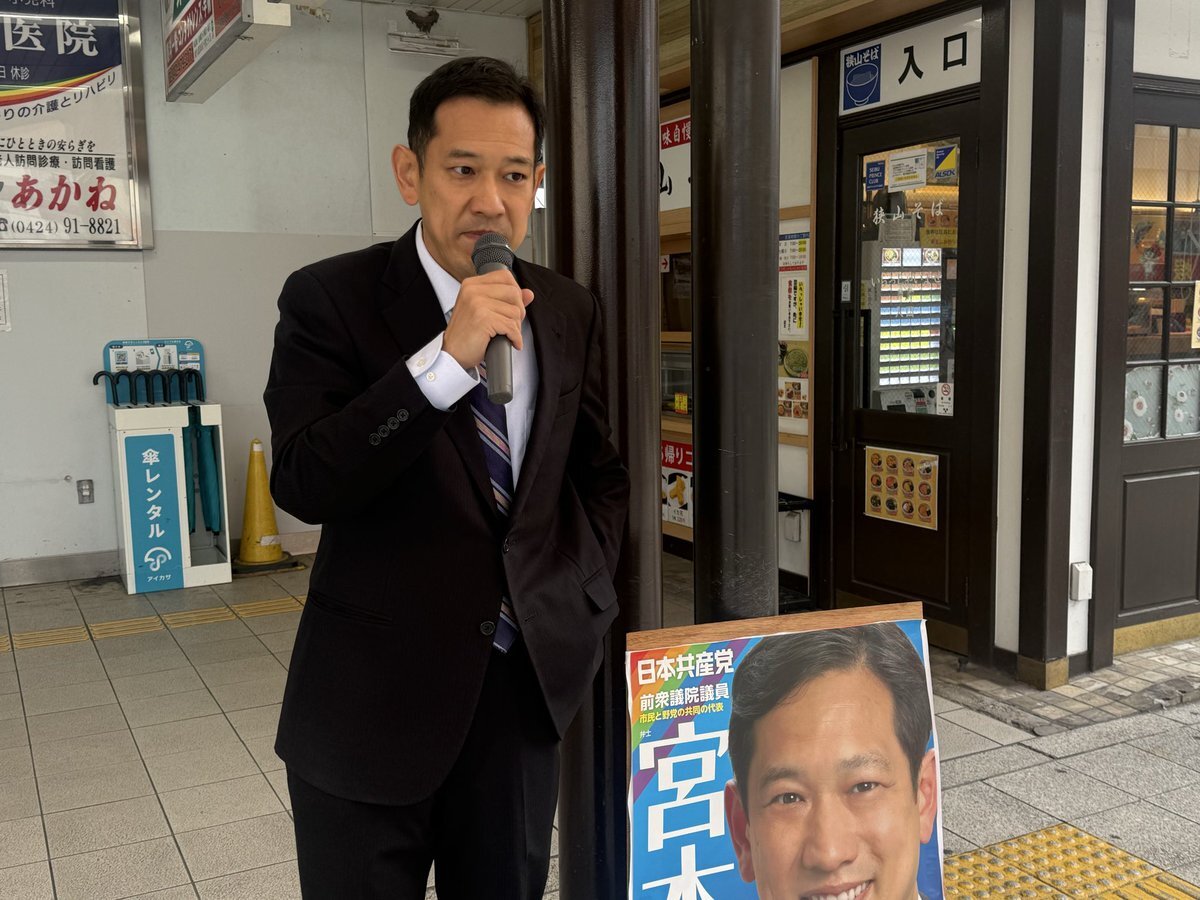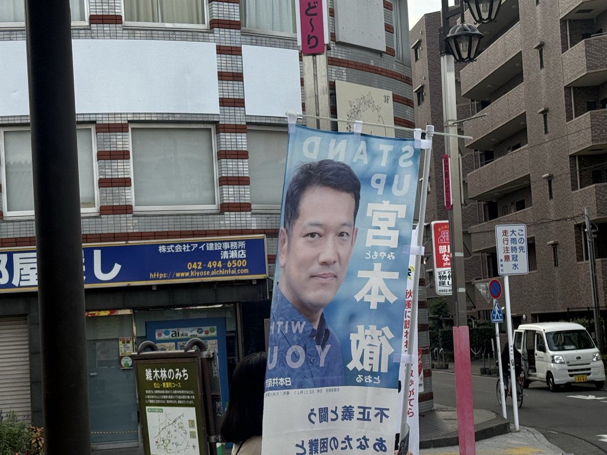#宮本徹 前衆議院議員 と清瀬駅南口で宣伝。 #宮本徹勝手連 の幟が爽やかな空の下映えます。ありがとうございます😊 宮本さんの言葉は鋭いけど、耳の中に美しい言葉もちゃんと残る。 「議会は、国民の民意を映し出す鏡🪞」 この言葉が今日のイチ推し #議会定数削減反対 pic.x.com/aPJL1I6Xzq