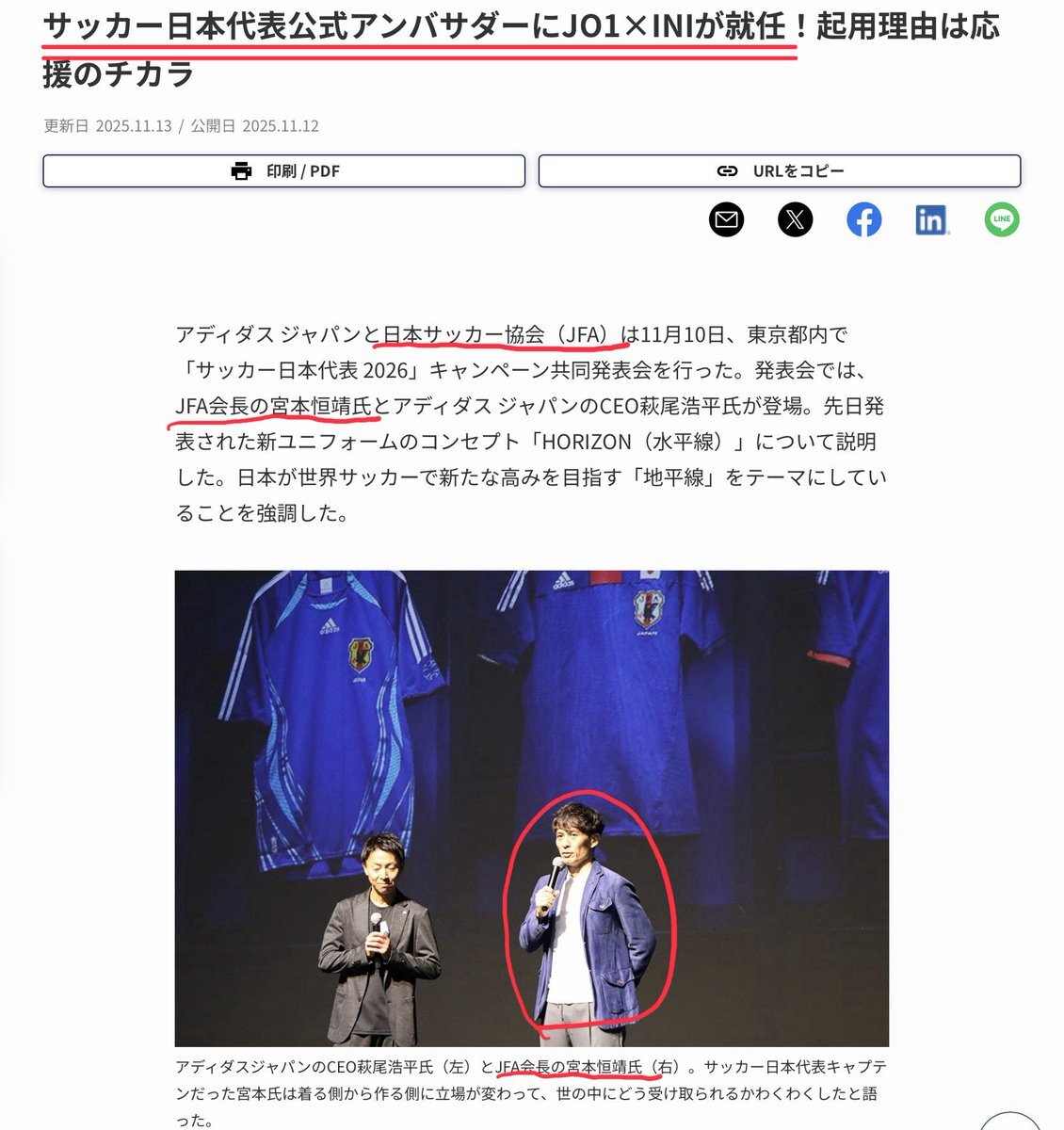 日本サッカー協会・ #宮本恒靖 会長「ちゃんと伝えたいものがある」キービジュアル変更に言及 sanspo.com/article/202511… #daihyo #サッカー日本代表 #SAMURAIBLUE 日本サッカー協会の宮本会長は、日本代表をイメージする宣伝画像が「太極旗に似ている」などと指摘されている問題について言及した。