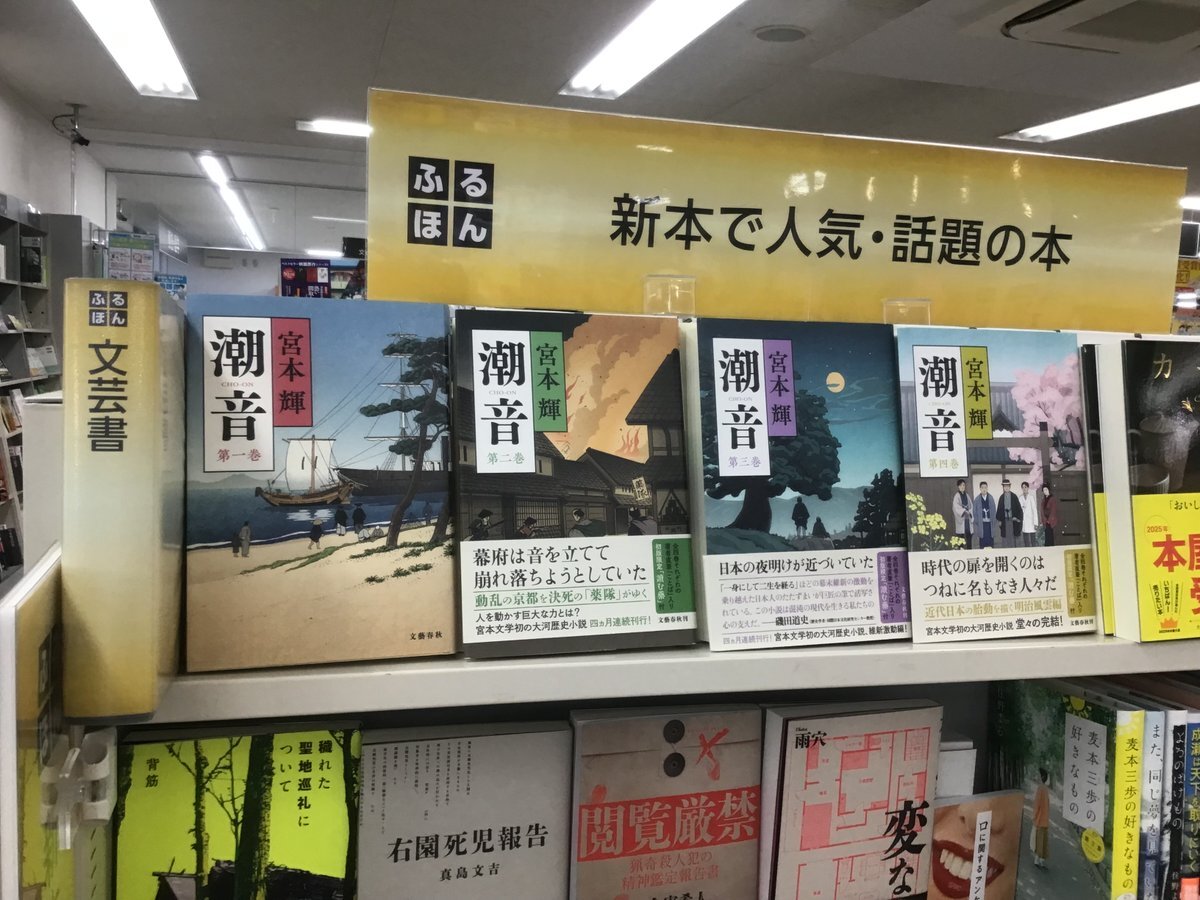 #宮本輝 さんの #潮音 1〜4巻をふるほんで買い取らせて いただきました✨ 幕末・維新の激動に立ちむかった富山の薬売り達の知恵 と勇気を描いた宮本文学初の大河歴史小説です。 新本だと1冊2000円以上ですが、各1500円程度とお求め やすくなってます。1階の「ふるほん人気作・話題作」にあります🤗 pic.x.com/Th4qc97z8u