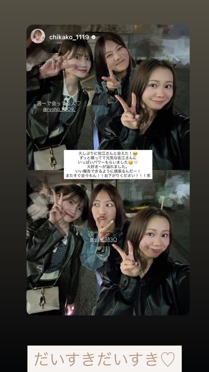 【SNS】 📱松本慈子 Instagram ストーリーズ instagram.com/chikako_1119?i… #宮澤佐江 #佐江ちゃん #松本慈子 #北川綾巴 @oyasuminaSAE_m @chikako_1119 @ryoha_1009_ pic.x.com/SjjhzOcjh1