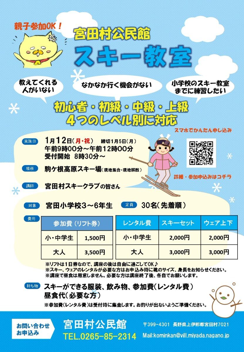【イベント情報】 スキー教室 参加者募集! 宮田村公民館で毎年恒例のスキー教室を開講します。是非ご参加ください♪ 【日時・会場】 1月12日(月・祝)午前9時~12時 駒ヶ根高原スキー場 詳細は村HPをご覧ください。 vill.miyada.nagano.jp/topics/5079 #宮田村 #公民館 #スキー教室 pic.x.com/bJU19UXTA5
