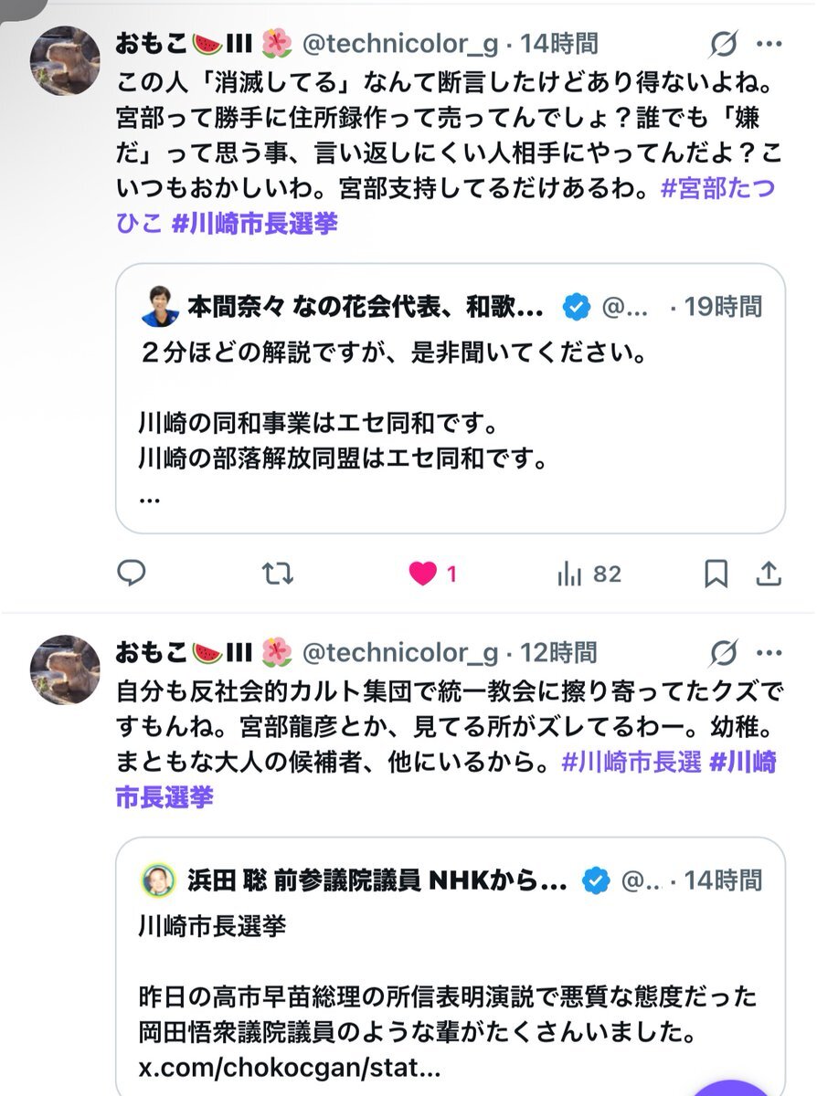 浜田聡と本間奈々に応援される #宮部たつひこ 🤢☠️ #川崎市長選挙2025 pic.x.com/sMX7sDICoD x.com/technicolor_g/…