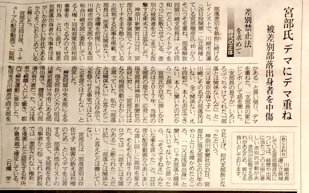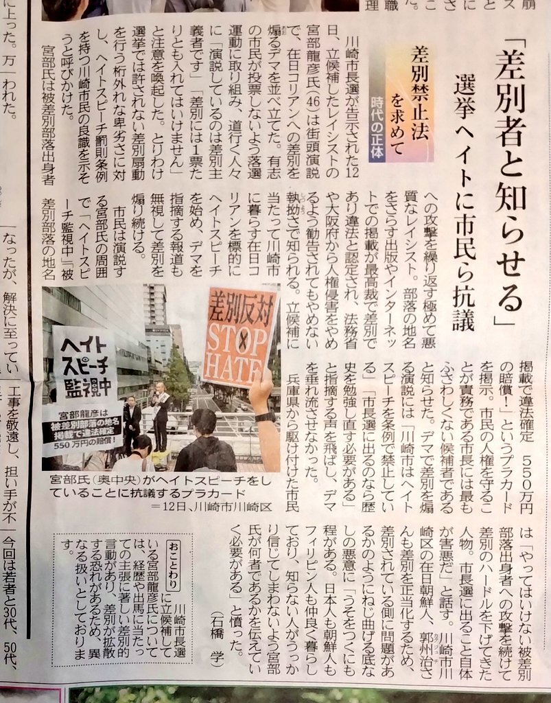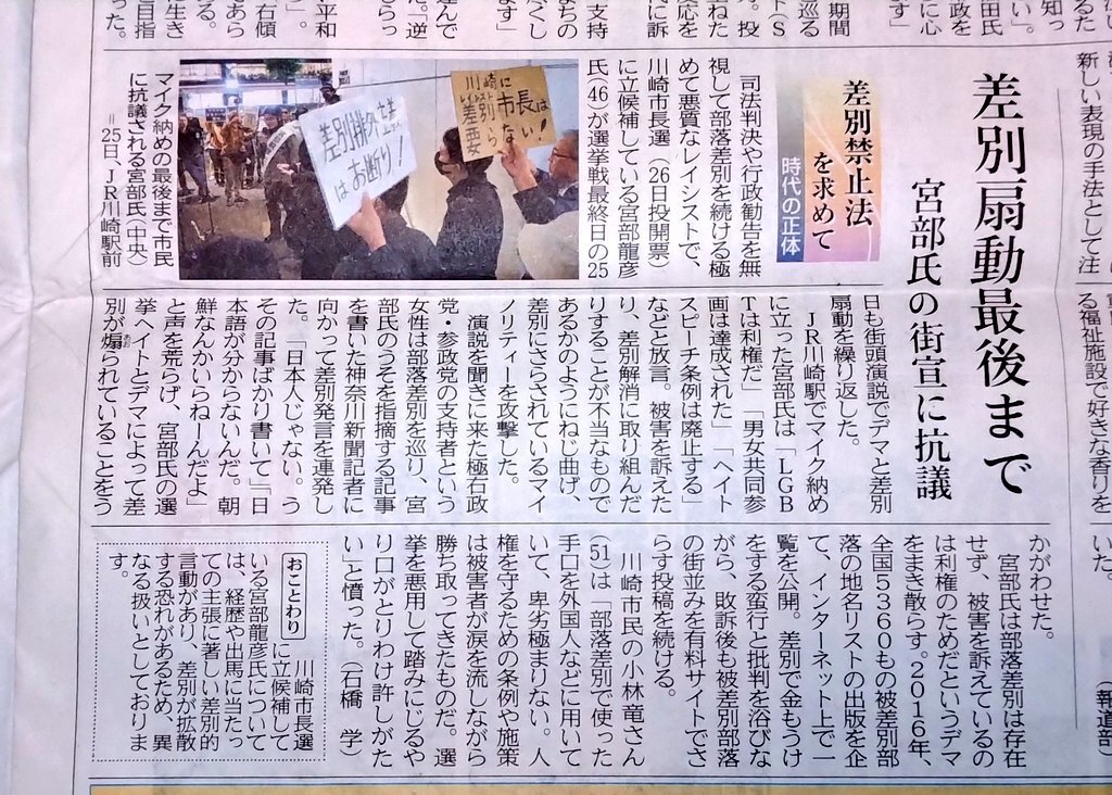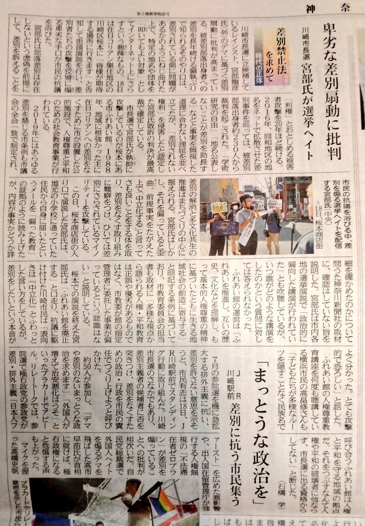 2025.10.14 「デマ拡散許さず」“兵庫県知事選の風潮に乗じ差別をバラ撒く新たなおもちゃとして選挙を発見してしまった” レイシスト候補に圧倒的最下位落選と供託金没収を #宮部龍彦に投票してはいけない #川崎市長選挙 🗞️神奈川新聞は駅コンビニ、図書館で。買って読んで応援📢 pic.x.com/cwj5dMLmv2