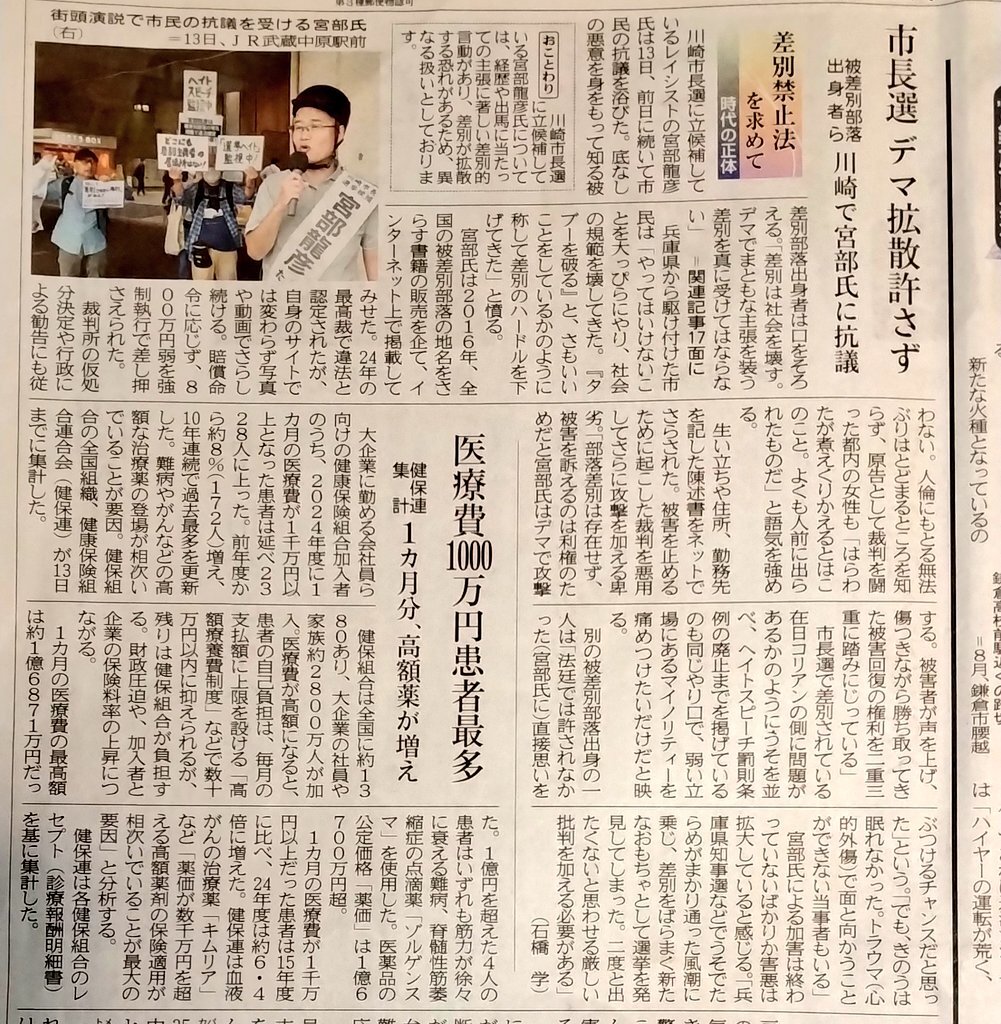 2025.10.13 朝刊1面、社会面「差別者と知らせる」 レイシスト候補に圧倒的最下位落選と供託金没収を #宮部龍彦に投票してはいけない #川崎市長選挙 🗞️神奈川新聞は駅コンビニ、図書館で。買って読んで応援📢 pic.x.com/B5uZCmg2gD