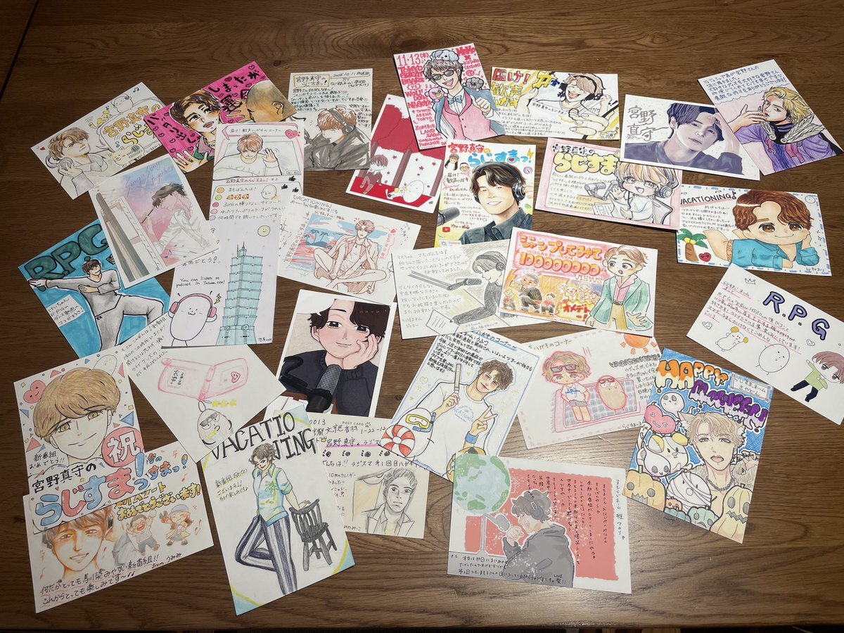 「届け!歓声ハガキ」 コーナーで紹介したイラストはこちら✨️ 配信で紹介出来なかったイラストも一部だけご紹介! 引き続き官製ハガキをお待ちしています! 今月のテーマは「ハロウィン」 もちろんテーマ「フリー」のイラストもOKです‼️ #宮野真守らじすまっ #宮野真守 @miyanomamoru_PR pic.x.com/lhr5WxBGwv