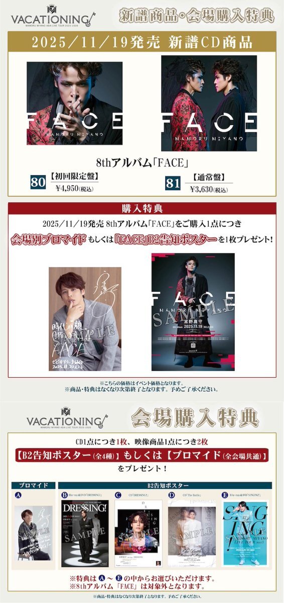 #宮野真守VACATIONING ライブグッズ・CD/Blu-ray/DVDブース開場中! 爽やかで高級感も漂うこだわりのライブグッズが展開! CD物販では会場別ブロマイドやB2告知ポスターもプレゼント! どちらもぜひお見逃しなく! ▷ライブ特設サイト miyanomamoru.com/live/vacationi… pic.x.com/F9oUBOvkKo