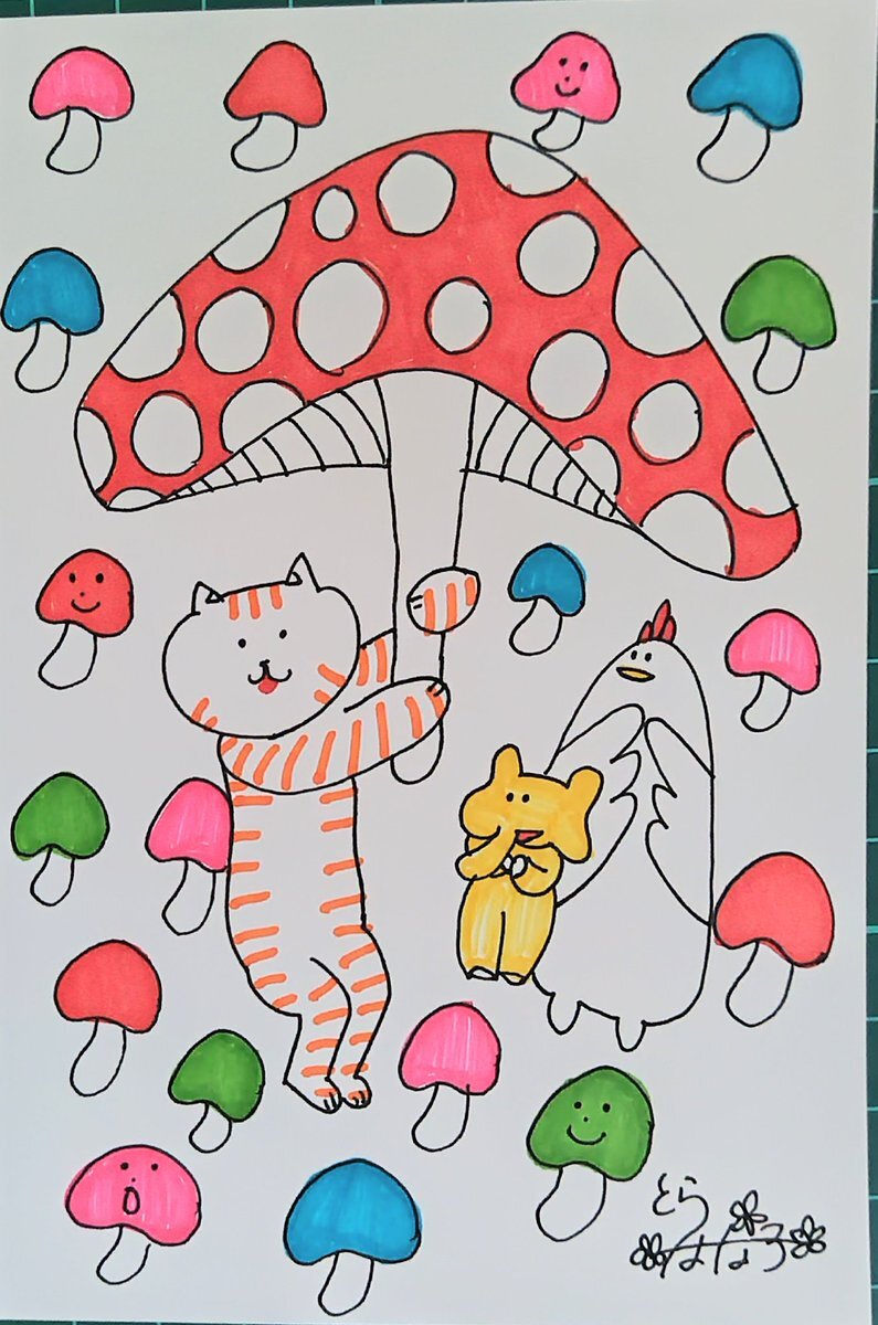 おはようございます!! 巨大きのこ傘だよ〜!! 今日も素敵な日曜日を〜🤗 #みんなで楽しむTwitter展覧会 #家の三人衆 pic.x.com/ypQa3WbC3r