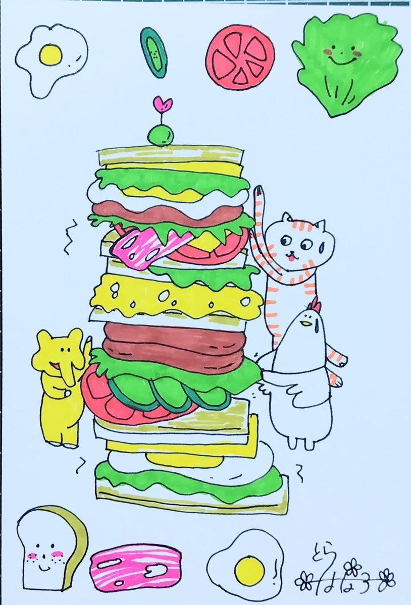 おはようございます!! #サンドウィッチの日 サンドウィッチジェンガ!! レタスを抜けるか? 今日も素敵な月曜日を〜🤗 #みんなで楽しむTwitter展覧会 #家の三人衆 pic.x.com/kNKCJKnriw