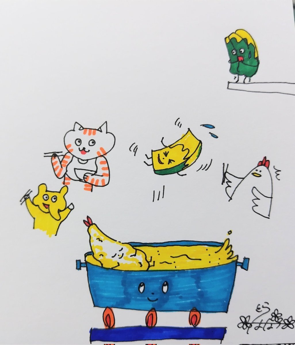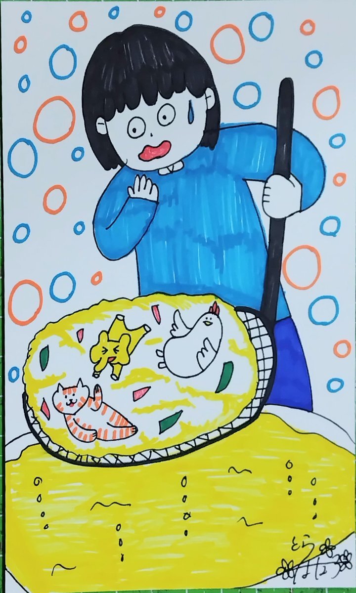 おはようございます!! 天ぷらの飛び込み競技!! 上手く揚がるか!? 今日も素敵な月曜日を〜🤗 #みんなで楽しむTwitter展覧会 #家の三人衆 pic.x.com/7qeXEFmnTR