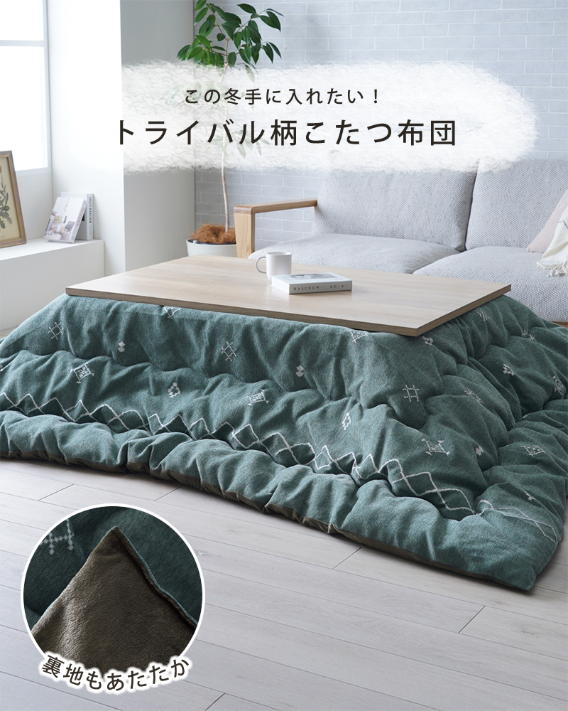 深みのあるトライバル柄が印象的な 薄掛けこたつ布団 表地にはシェニール織りの凹凸ある生地を使い 豊かな色彩と、指先まで伝わる温かみを感じます 裏地はなめらかなマイクロファイバー こたつに入った瞬間のひやりを和らげてくれます♪ kagunosato.com/c/kotatsu/_088… #家具の里 #こたつ布団 #日本製 pic.x.com/HgEtEcXvdo