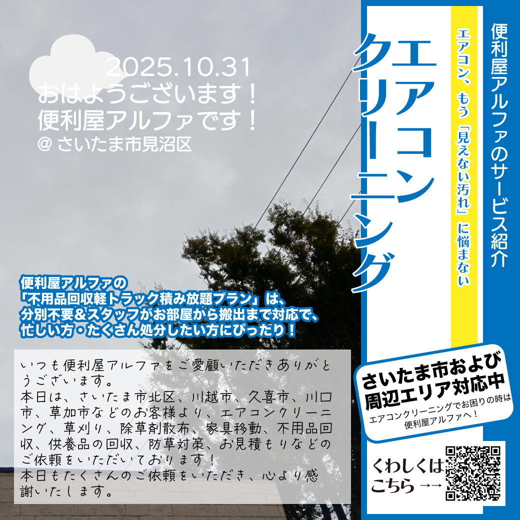 ☀️おはようございます! 便利屋アルファです! さいたま市はくもり 本日もご依頼ありがとうございます! #エアコンクリーニング  ←詳しくはリプ欄👀 #草刈り #除草剤散布 #家具移動 #不用品回収 #供養品の回収 #防草対策 #便利屋 #便利屋アルファ #さいたま市見沼区 #企業公式相互フォロー pic.x.com/4yBqHOX2Yo