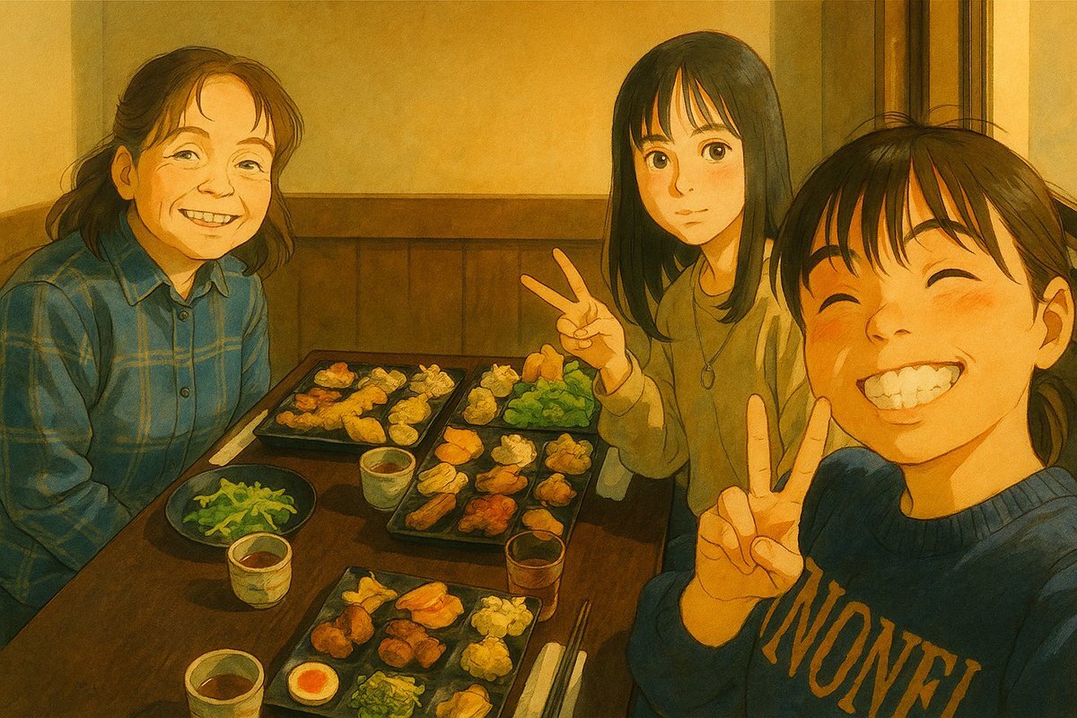 昨日、お姉ちゃんとお母さんが奢ってくれました! 自然食バイキング🍴 健康的で旬の食材が使われています。お腹いっぱい食べすぎたけど、幸せでした🤤 お母さんジブリ風にしたら老けすぎて笑笑 #家庭連合二世の日常 #食べ放題 #ご飯最高 pic.x.com/fwDhoRmxtC