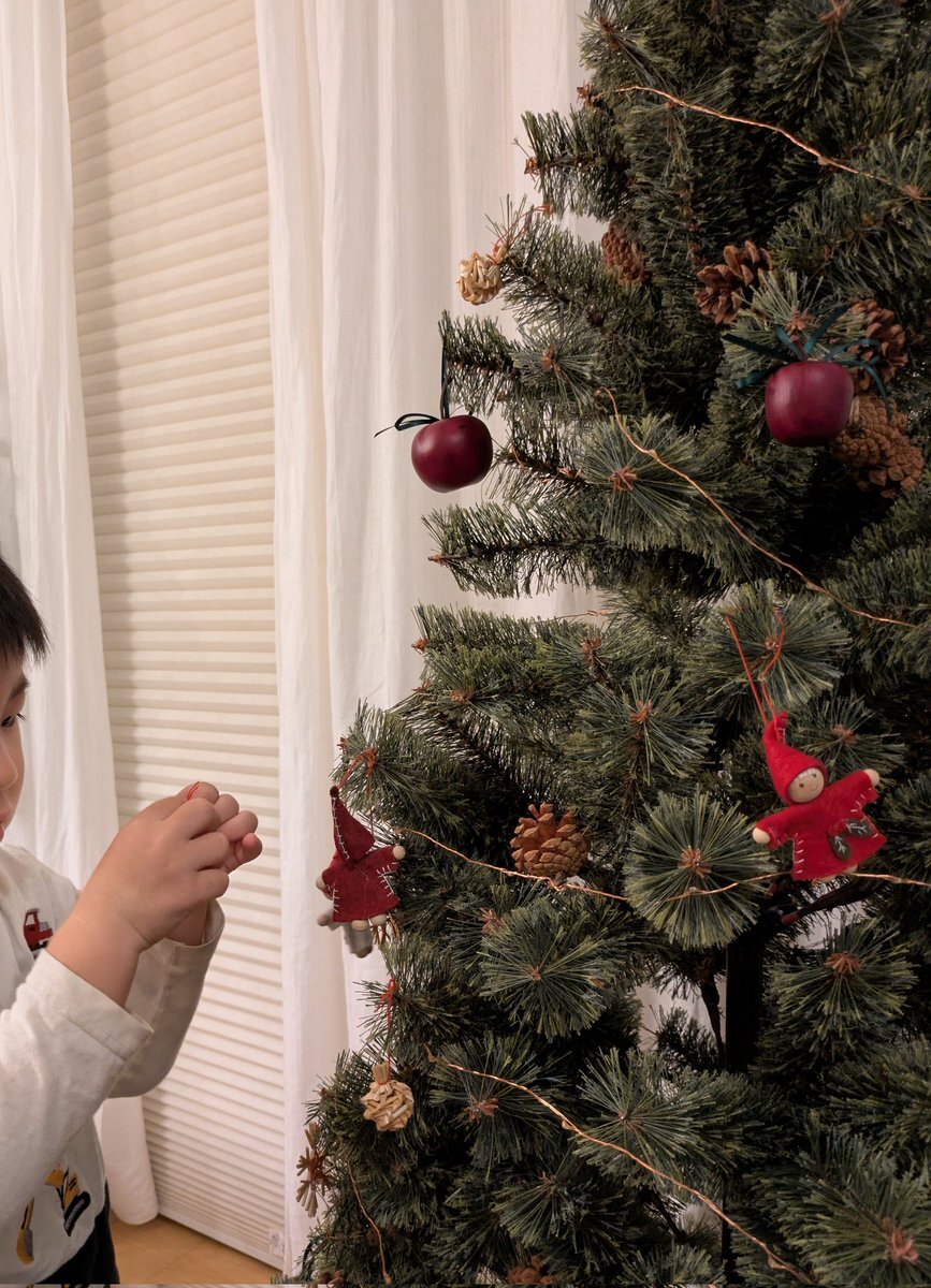 息子と一緒にツリーの飾り付け♪ 今年は自分でやりたがり、ほとんどお任せしました☺️サンタさんくるといいね〜🎅 #家庭連合二世の日常 pic.x.com/A5simavEEN