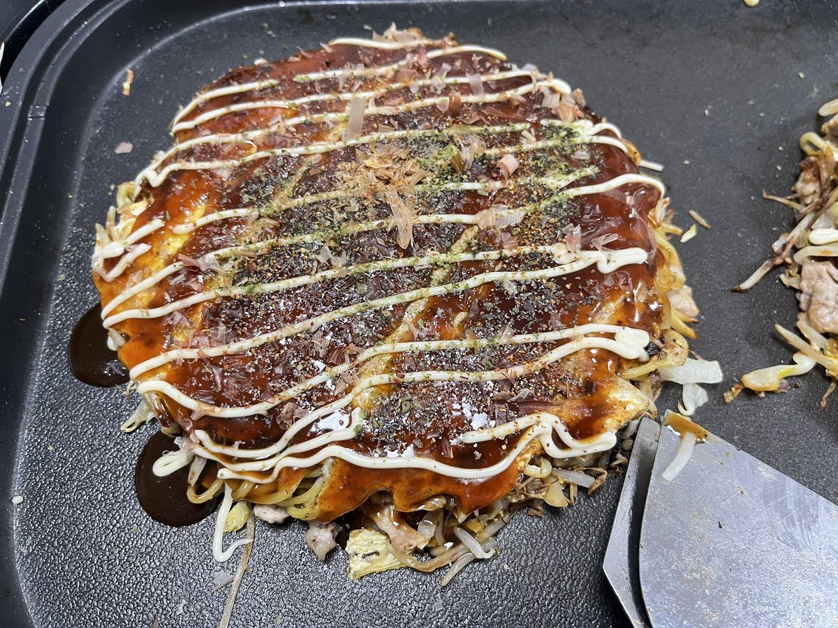 妻からのリクエストで広島風お好み焼き作りました。 妻は褒めてくれるけど、いつも納得のいく出来栄えにならんのよな😅 精進します🔥 #お好み焼き #家庭連合二世の日常 pic.x.com/hthwUeRvEV