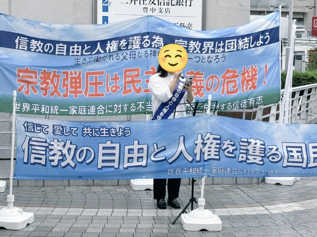 返信先:@Tbrhrn3331信徒でない方も応援に来て下さって感謝です。マスコミで報道されないので、Xや外に出て草の根運動で発信して真実伝えましょう‼️今世論を変えるのは私達です‼️ #家庭連合解散命令は憲法違反 #拉致監禁・強制棄教は犯罪