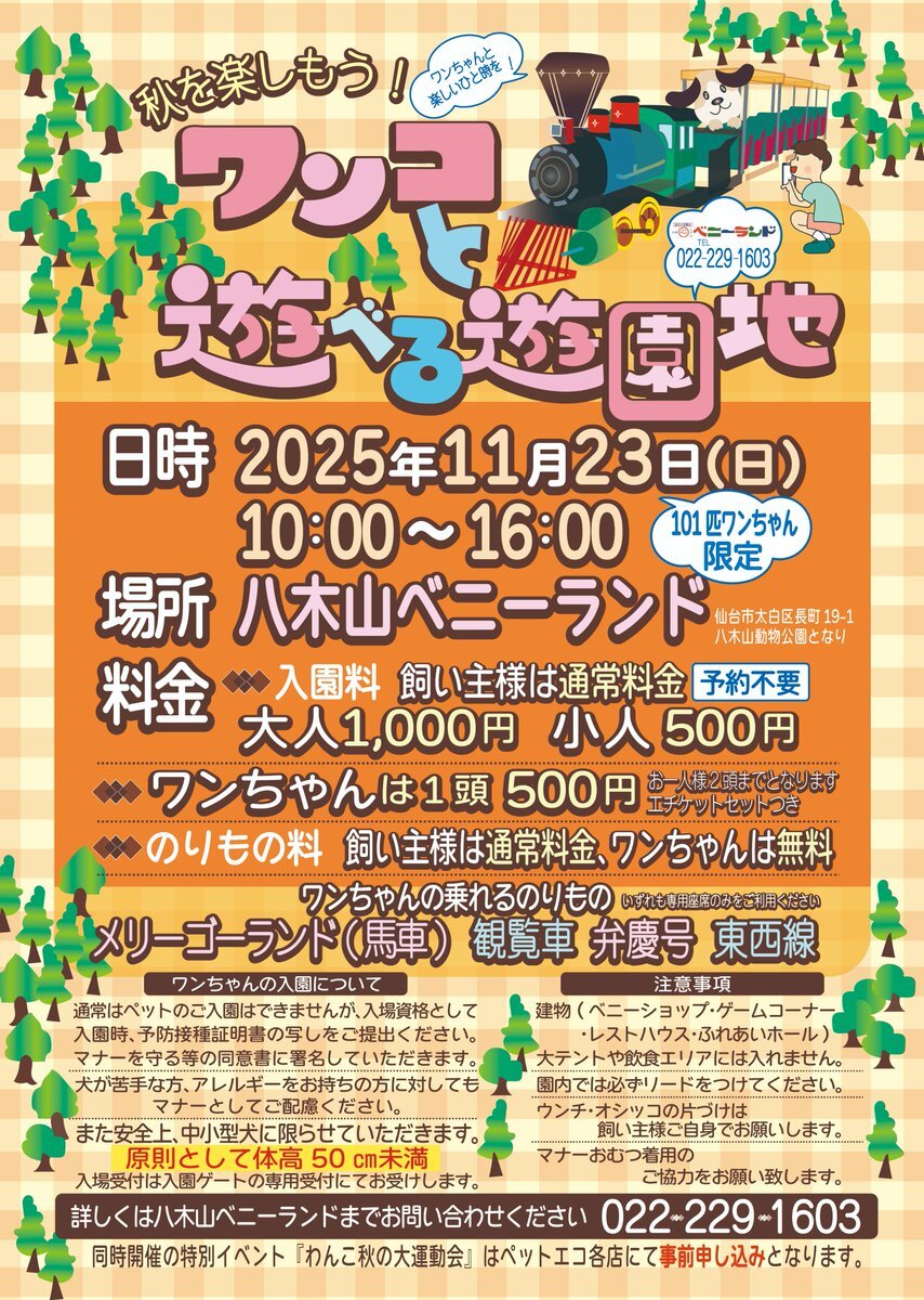 明日23日(日)は今シーズン最後の『#ワンコと遊べる遊園地』・『#わんこ秋の大運動会』。 天候もよさそうですので、ワンコとの楽しい一日をお過ごしください。 #仙台 #遊園地 #八木山ベニーランド #家族でお出かけ #お出かけ #家族づれ #子どもづれ #デートスポット #宮城 pic.x.com/yei27QprIb