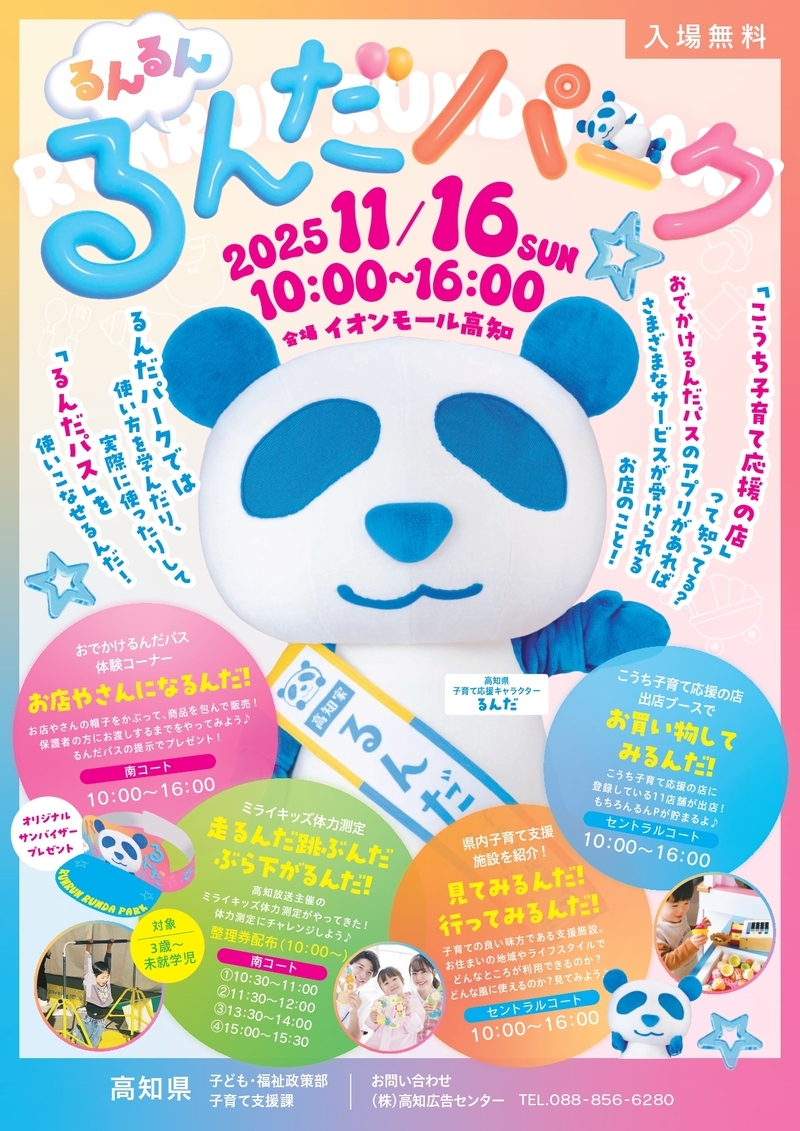 🎈高知の親子イベント「るんだパーク」 11/16(日)!10-16時@イオンモール高知 るんだパスを体験できるお店やさんごっこや 子育て応援店が大集合!✨ ワークショップや体験型コンテンツが盛りだくさんです! #るんだパーク #高知子育て #家族でお出かけ pic.x.com/Ayc4cM4dWX