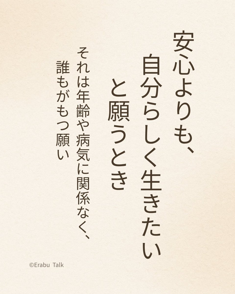 認知症でも、病気があっても 「自分らしく生きたい」という願いは消えない。 誰かの「安心のため」に 大切なものが奪われてしまうこと、ありませんか。 ある80代の男性の物語を通して 「選ぶ力」について綴ります。 → note本文はこちら note.com/erabutalk/n/n3… #自分らしく生ききる #家族のこと pic.x.com/Nq3lZBsy88
