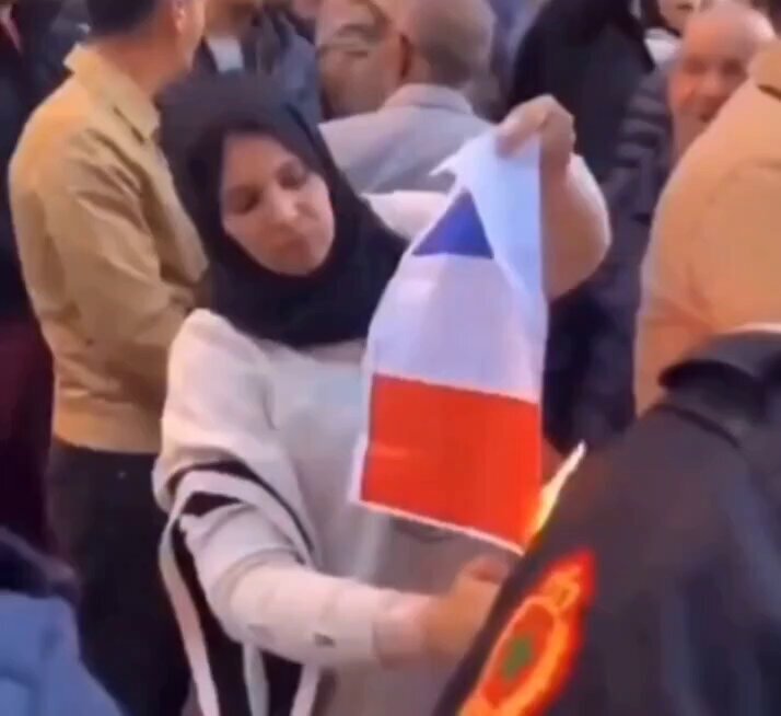 フランス国旗を燃やすイスラム 本来、受け入れてくれた国への敬意があるものだが 万国共通で自分のド貧乏国家から来て、移住先を愚弄するのだ