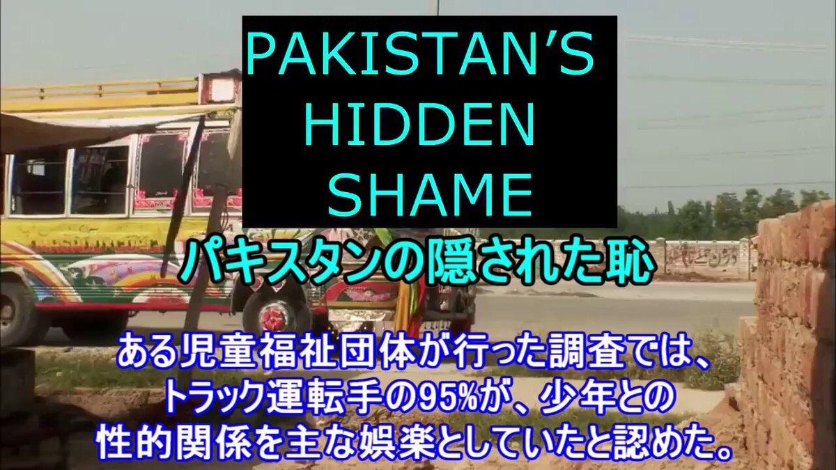 🇵🇰パキスタンでは、トラック運転手の95%が少年とのセックスを娯楽とし、路上生活する子供の90%がレイプされている。これは全国で数十万人規模の深刻な問題で、バスやトラックのターミナルで少年を助手や見習いとして雇って性的に搾取する文化が根付いている。ジア・アワン弁護士は、毎日数百人の子ど