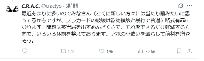 #日本共産党 #しばき隊 #家登みろく 本名 #樋口亮子 #なべくら雅之 #鍋倉雅之  @cractyo  >プラカードの破壊は器物損壊と暴行で略式有罪 それをできるだけ軽減する方向で、いろいろ体制を整えております。アホの小遣いを減らして前科を増やそう。 共産、しばき隊界隈の #当たりや屋 活動の目的 pic.x.com/6JMpXUtnhG