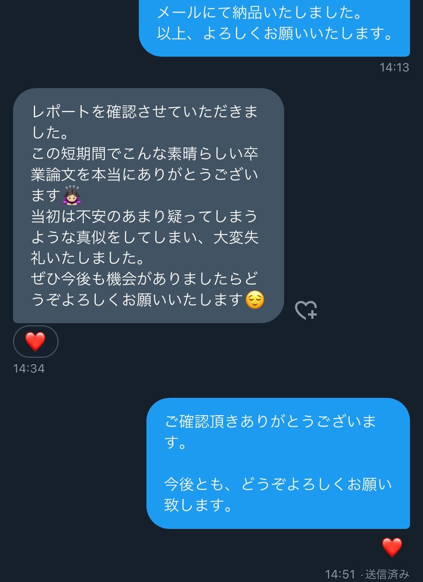 レポート・卒論代行サービスです。 レポート・論文「なかなか最後まで書くことができない」「内容を上手にまとめることができない」と悩んでいる方も、ぜひご相談くださいませ。 お見積もりだけでもお待ちしてます。いいねorフォローでお迎え行きます! #論文代行 #宿題代行 #大学生 pic.x.com/Vhi90QmEf1